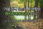 | 가을개벽의 정신 원시반본과 추상같은 엄정함은 대자연의 섭리 (8) | 2020.11.19 |