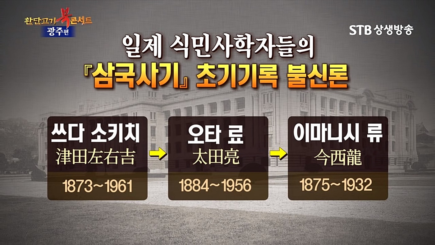 일본은 이런 미개한 한국인을 구제해준 구세주라고 한국인의 정신을 완전히 개조하여 노예로 만들기 위함입니다. 한국의 주류 강단사학은 대한민국의 3대 역사관련 단체인 동북아역사재단과 국사편찬위원회와 한국학중앙연구원 및 역사 관련 3대 기관과 한 몸입니다.