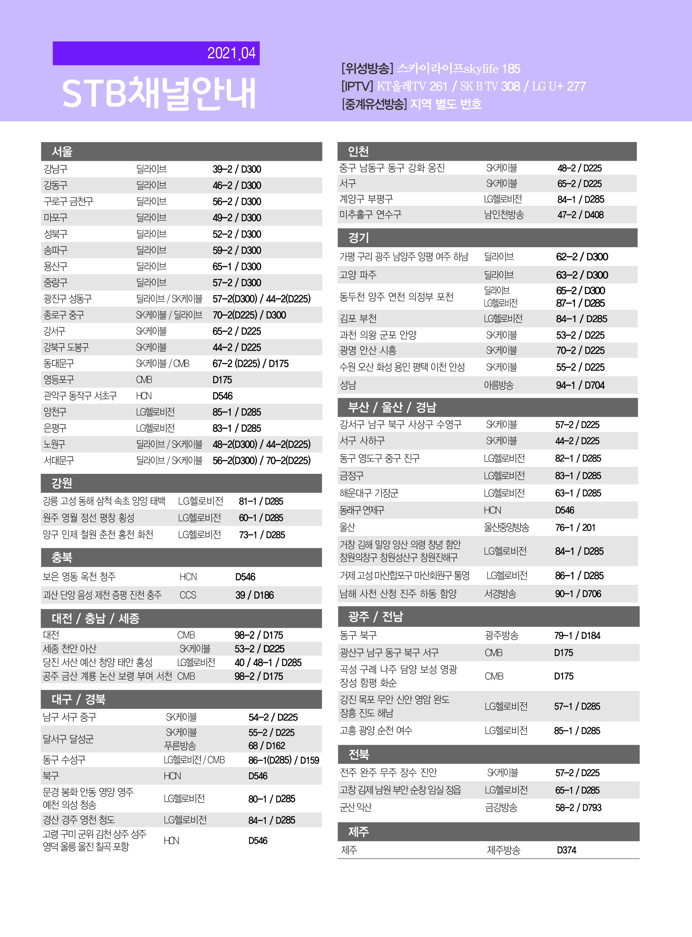 지구촌 유일이 한韓문화 중심채널 증산도 STB 상생방송 전국 채널 안내