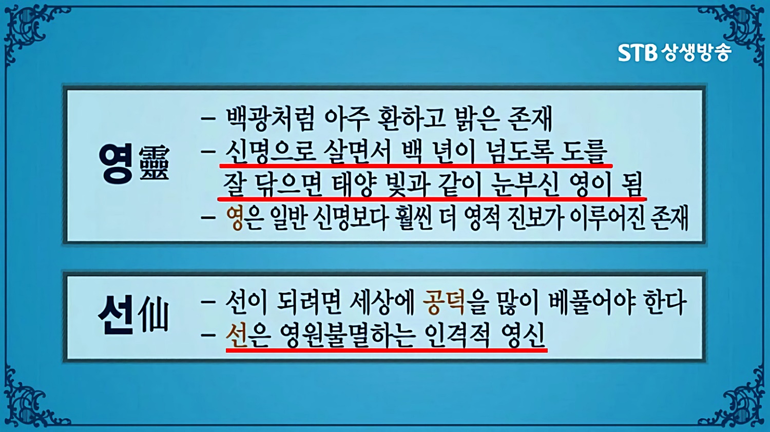 "혼(魂)은 하늘에 올라가 신(神)이 되어 제사를 받다가 4대가 지나면 영도 되고 혹 선도 되느니라.", "죽으면 아주 죽느냐? 매미가 허물 벗듯이 옷 벗어 놓는 이치니라."라는 증산 상제님의 말씀처럼 인간의 혼(魂, 영혼)은 본래 왔던 하늘로 돌아가살아 생전 쌓은 공덕과 닦은 바에 따라 영적 수준이 다른 영(靈) 또는 선(仙)이 된다는 말씀이며, 죽음이란 완전한 죽음이 아니라 육신이라는 껍데기를 벗는 것이라는 말씀입니다.
