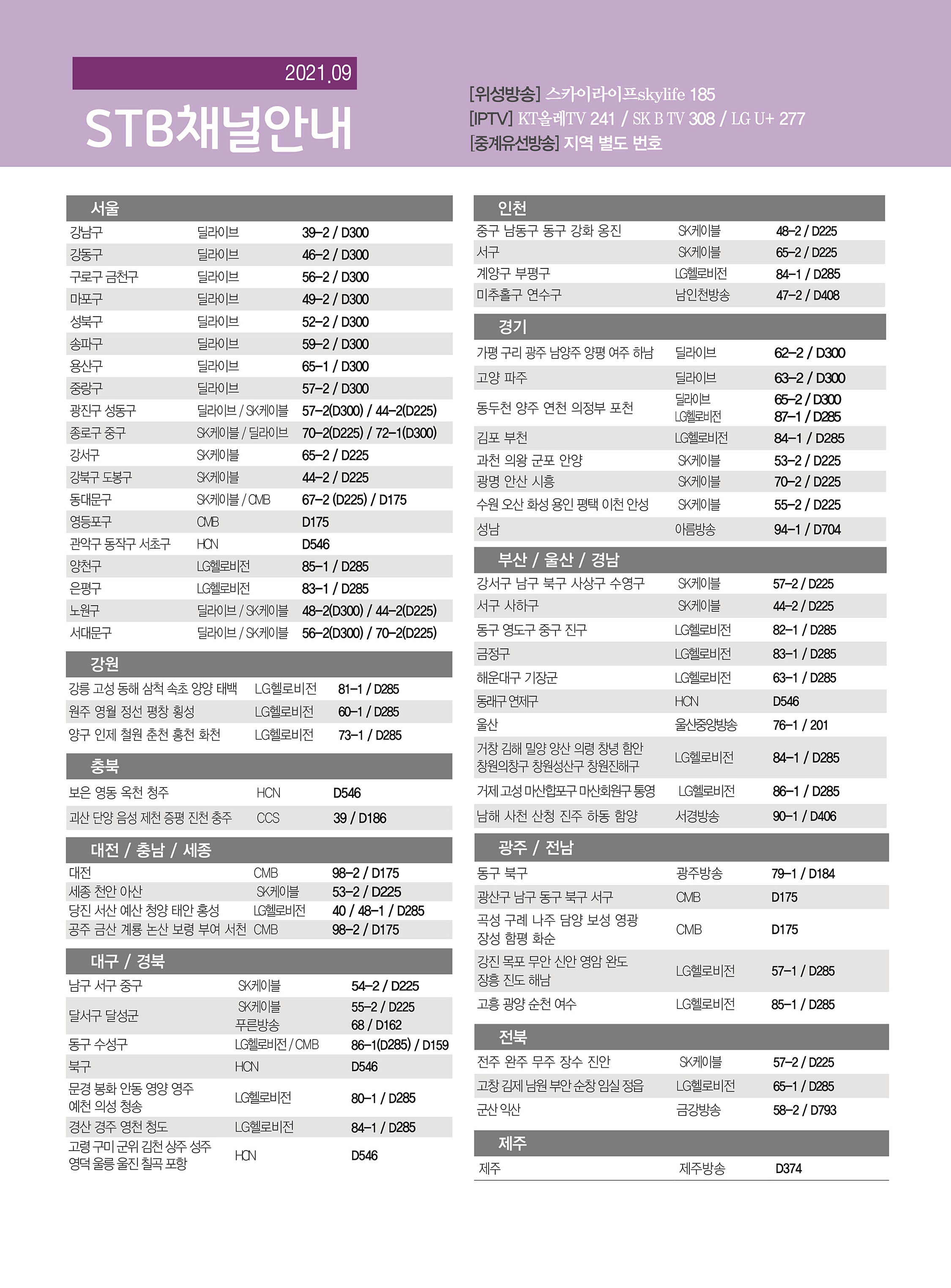 | STB 상생방송 2021년 추석 연휴 TV방송편성표 (8) | 2021.09.20 |