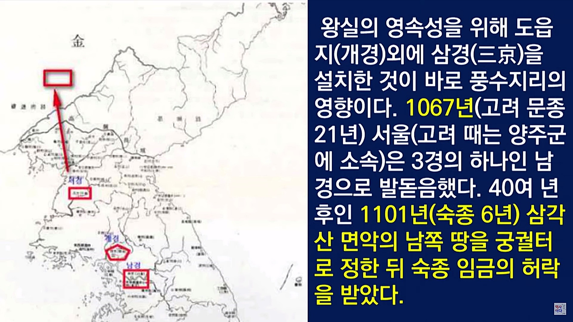 고려 숙종 1년(1096) 김위제가 남경 천도를 주장하는 상소문을 올립니다. 김위제가 주장한 고려의 삼경 제도는 단군조선 때 제천문 <서효사(신지비사)>의 핵심인 '삼한관경제(三韓管境制)'를 계승한 것입니다. 고려의 삼경 제도는 수도를 셋을 두고 국가를 통치하자는 것으로 고려의 수도인 개경(중경)을 중심으로 서경(평양)과 남경(한양 서울)에 수도를 더 만들어 나라를 다스리자는 내용입니다.