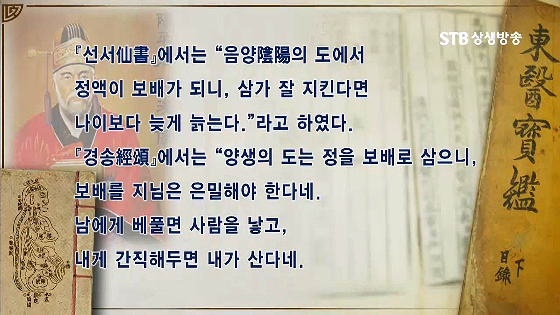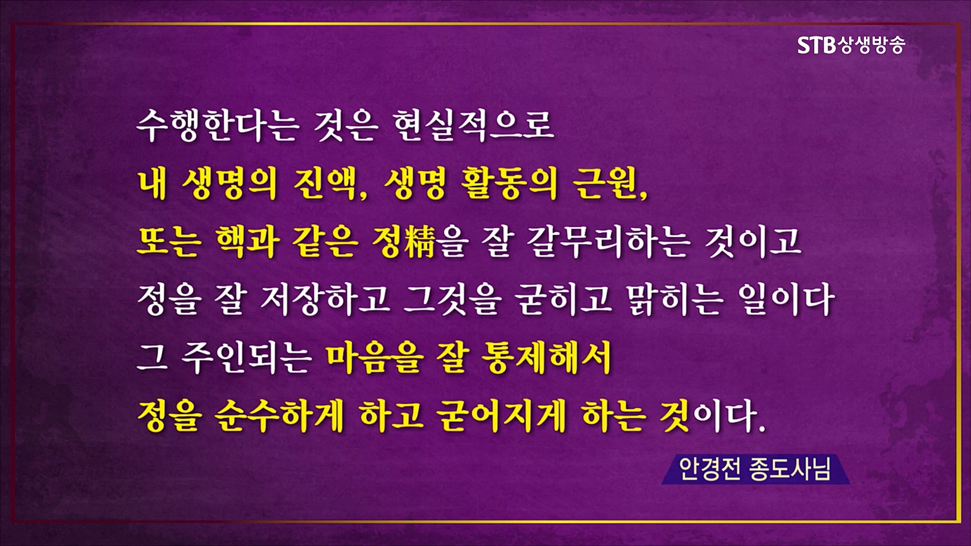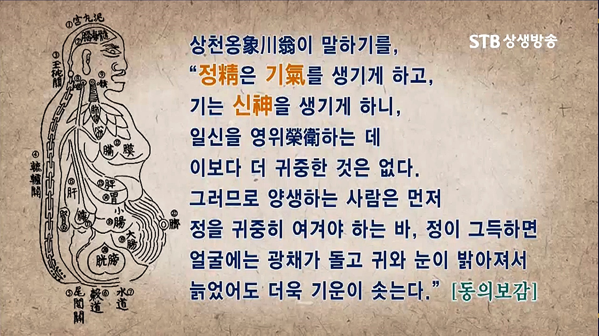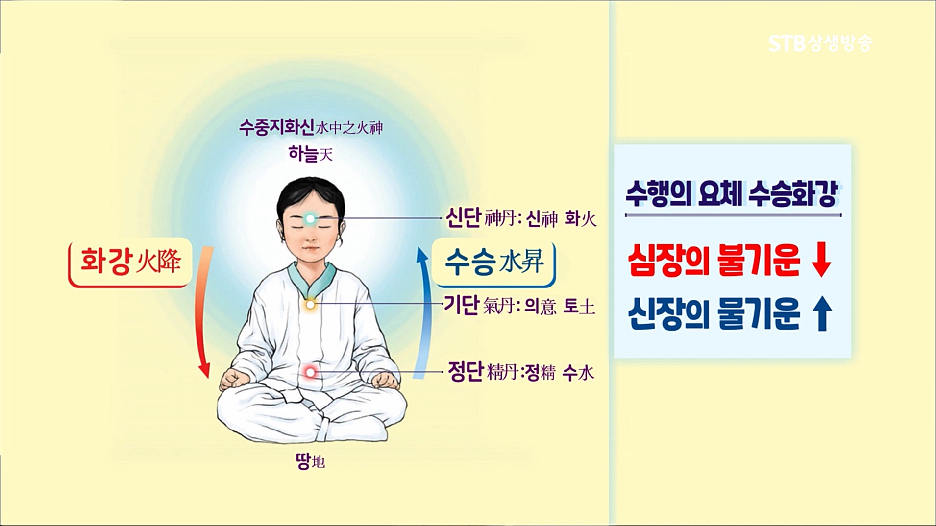 인간의 육체는 신장(腎臟)의 정수(精水)가 말라가면서 늙어가고 모든 병이 생깁니다. 인간이 수행을 해야 하는 일차적인 이유가 바로 활기차고 건강한 삶을 유지하여 무병장수하게 해주는 생명의 동력원을 보존하는 것입니다. 종국적으로 내가 정(精)을 맑히고 굳게 뭉쳐서 인간 육체의 유한한 생명의 극복하고 대우주와 하나 되어 영원한 생명의 길로 가기 위해 수행을 하는 것입니다.