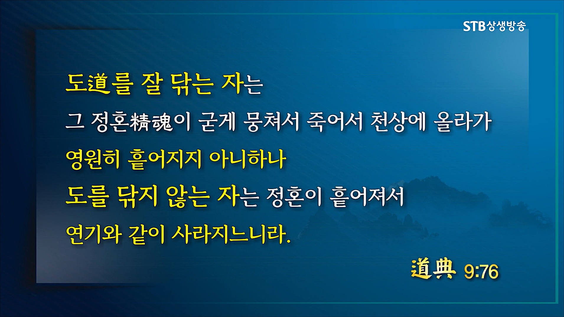 인간은 대우주 생명의 핵인 정기를 잘 관리해서 무병장수와 육체의 죽음을 넘어 내 몸과 마음과 영(靈)이 하나 되고, 대우주의 무궁한 조화생명, 조화성령과 하나 되어 영원한 생명의 길로 가기 위해서 반드시 수행을 해야 합니다. 만일 수행을 하지 않으면 영혼이 완전히 소멸하는 영원한 죽음을 맞이하게 됩니다.