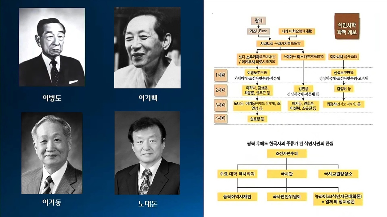서강대 총장을 지낸 이종욱 前 서강대 석좌교수는 '이병도와 손진태의 학맥을 잇는 서울대학파는 일제 식민사학자 쓰다 소키치를 추종하는 폐쇄적인 집단'이라고 비판했습니다. 일제 식민사학 2세대 이기백으로부터 역사학을 배운 이종욱 전 서강대 석좌교수는 일제 식민사학을 계승한 주류 강단사학으로부터 수십 년 동안 배재 당한 비주류 역사학자입니다.