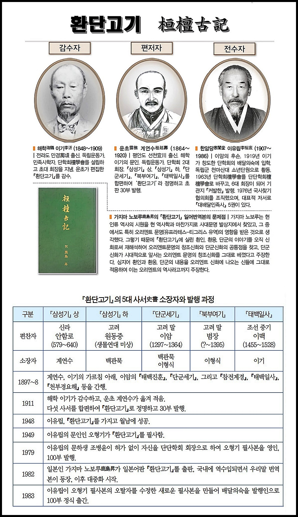 일본에서 출간된 책은 동방의 역사, 즉 우리 역사가 중동의 오리엔트 문명에서 발원했고, 7천 2백여 년 환인, 환웅, 단군의 삼성조 역사는 오리엔트 창조신화를 베꼈다고 조작했습니다. 또한 일제의 황국사관을 삽입하여 한국사를 일본사로 둔갑시키는 등 본래 <환단고기> 내용과는 너무 다르게 왜곡 조작해서 출판한 것입니다.