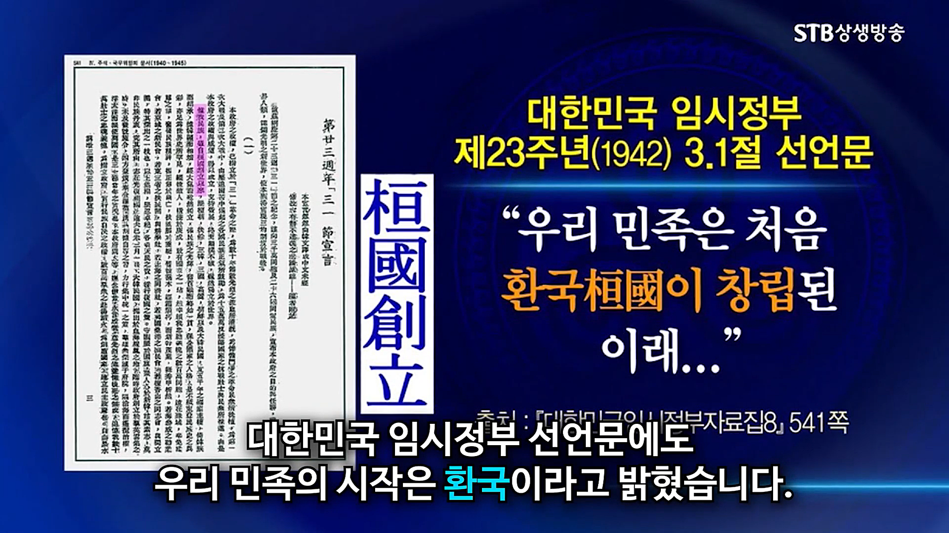 이때부터 조선총독부 조선사편수회가 편찬한 <조선사> 내용만 유일한 '정설'로 인정하고, 일제가 눈엣가시처럼 여긴 대한민국 임시정부와 독립운동가들의 역사관은 모두 부정됩니다. 1942년 대한민국 임시정부는 제23주년 삼일절을 맞아 "우리 민족은 처음 환국이 창립된 이래 단군, 부여, 삼한, 삼국, 고려, 조선 및 대한민국을 거쳐......" 선언문을 발표했습니다.