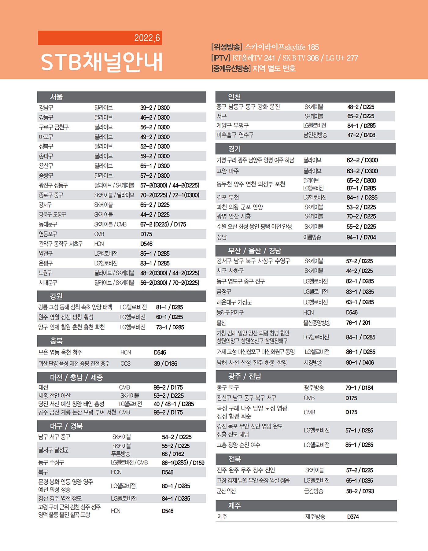 한韓문화 중심채널 증산도 STB 상생방송 전국 채널 안내