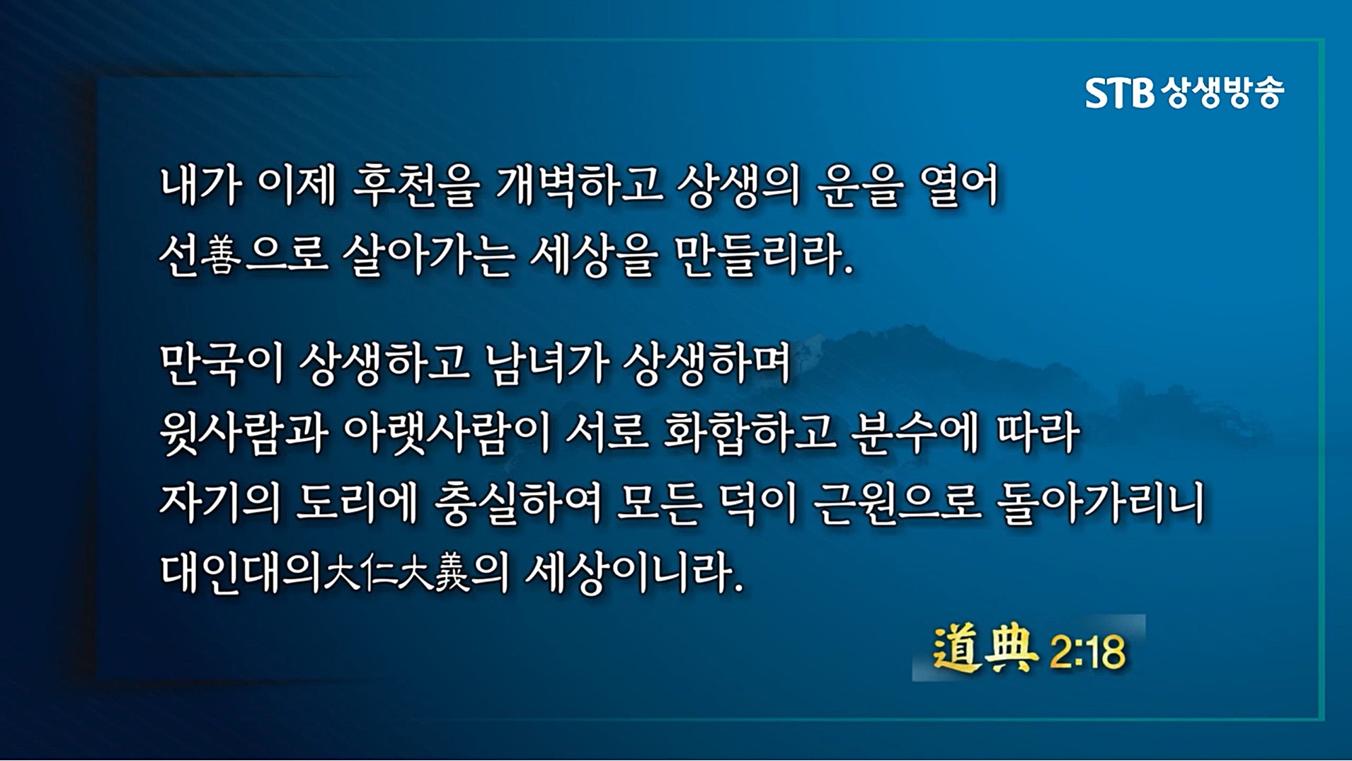 도(道)를 완성하고 덕(德)을 바로세우는 상생의 성숙한 문화를 열어가는 STB 상생방송