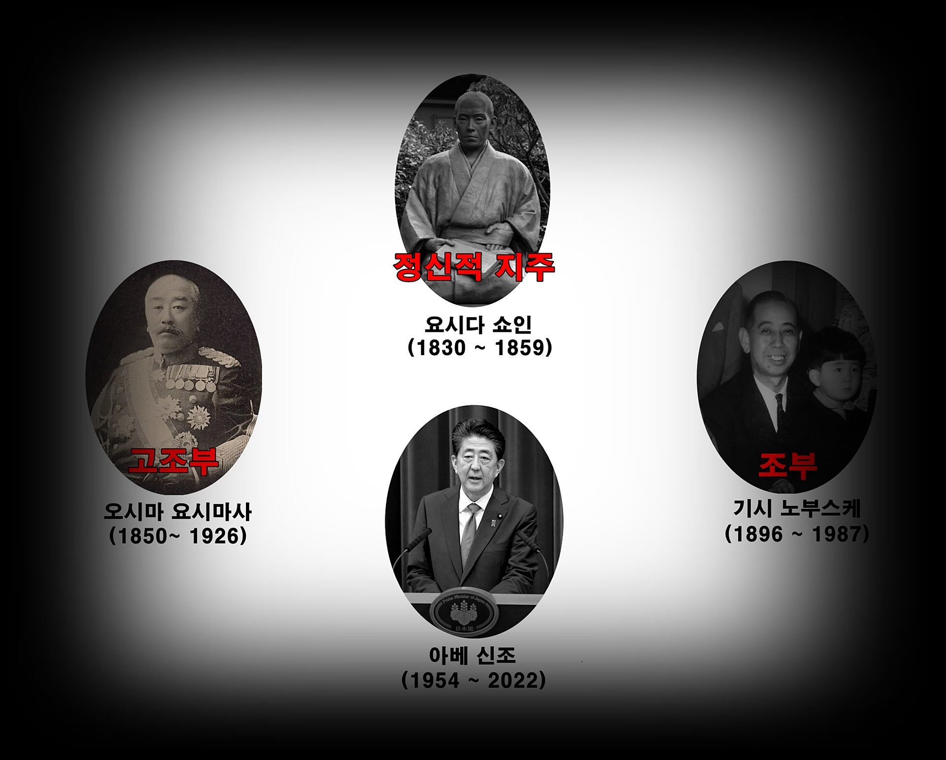 죽은 자는 불쌍하지만, 아베 신조가 한국 정벌을 주장하고 군국주의 화신들을 배출한 요시다 쇼인을 정신적 지주로 모시면서 고조부와 조부의 길을 그대로 걸어갔습니다. 군국주의 부활을 꿈꾼 아베 신조의 가치와 신념은 한국 침략과 금수만도 못한 온갖 악행을 부정하면서 군국주의 부활을 꿈꾸고 있는 상당수 자민당 의원들이 추구하는 가치이기도 합니다.