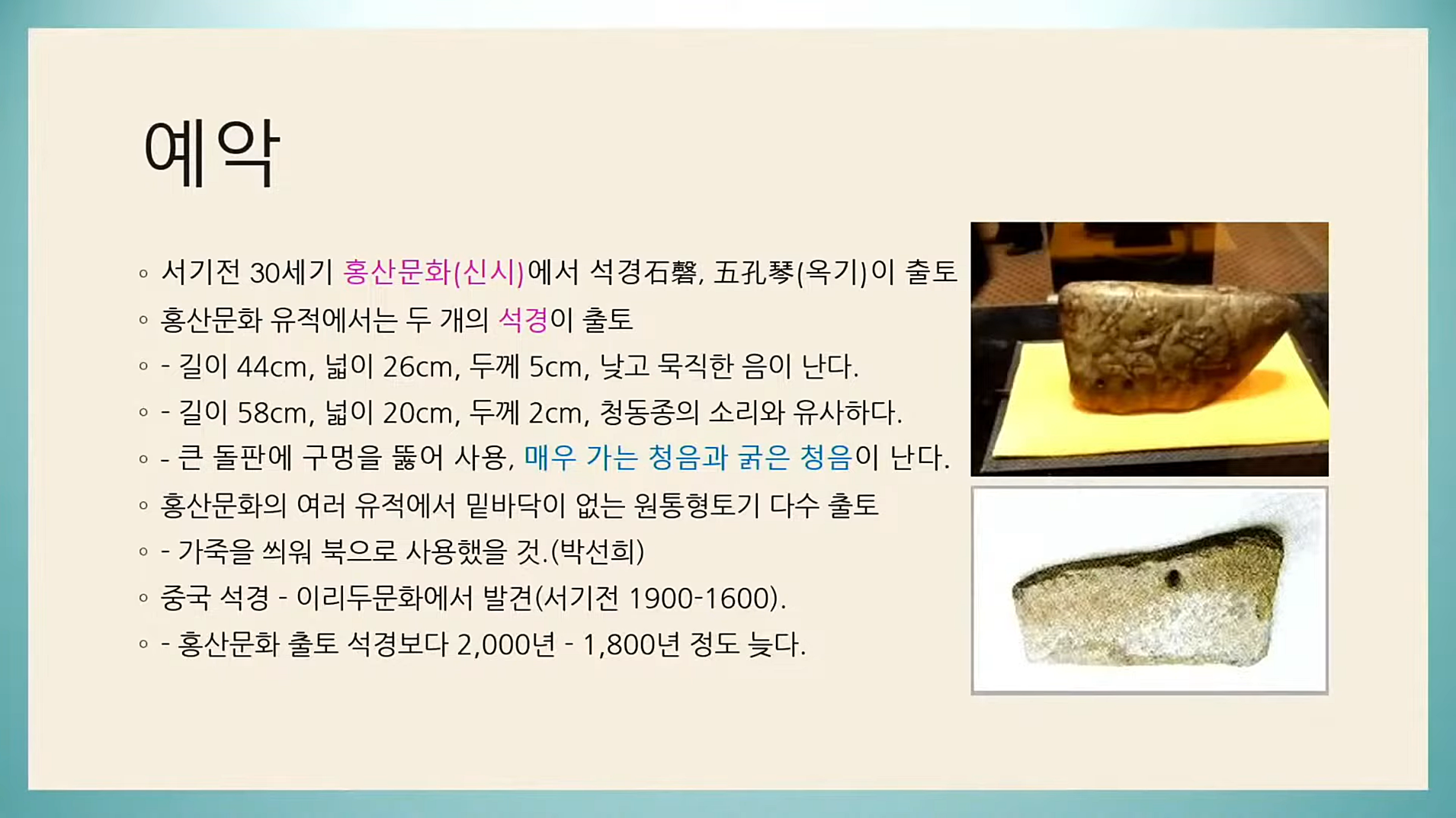 '예(禮)'란 하늘과 땅의 질서, 곧 천도(天道)와 지리(地理)를 말하고, 인간의 역사로 보면 법과 사회적 규범 등을 말합니다. '악(樂)'은 조화(調和), 곧 서로 어울려 전체적으로 균형되고 하나 됨을 이르는 하모니(harmony)가 예악(禮樂)의 본래 의미입니다. 천지의 질서와 인류 하나 됨의 예악 문화는 인류 태고시대 천지인(天地人)의 삼계 우주를 다스리시는 통치자 삼신상제님께 감사한 마음을 담아 정성을 다해 올린 보은(報恩) 예식인 천제(天祭, 제천祭天) 문화에서 비롯된 것입니다.