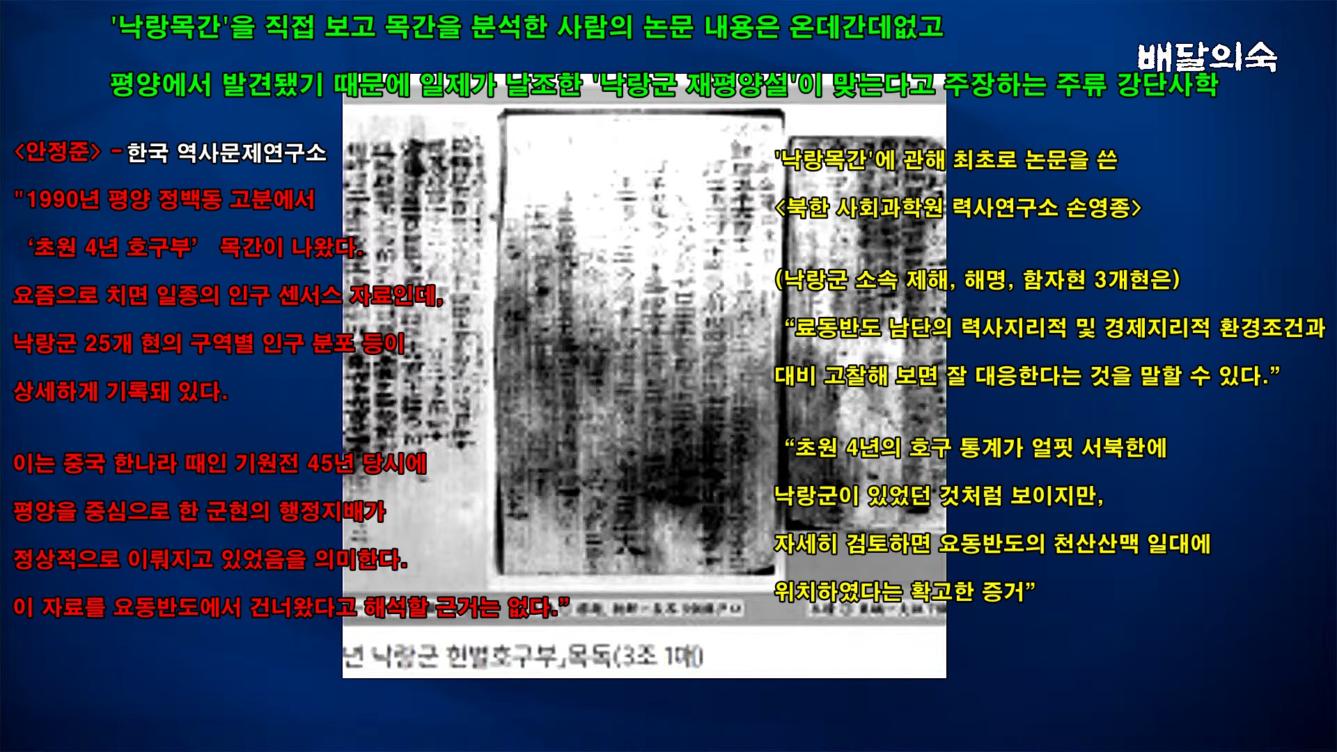 일제 식민사학을 굳건하게 뿌리내려 한국인을 식민사관의 정신적 노예로 만드는데 혁혁한 공을 세우고 있는 역사문제연구소의 '역사비평'은 한국사를 말살한 조선총독부 조선사편수회의 기관지라고 해도 전혀 과언이 아닙니다. 일례로 1990년 북한 평양에서 발견된 '낙랑목간'에 대해 가장 먼저 논문을 쓴 북한 사회과학원 역사연구소 손영종은 논문에서 '낙랑목간' 자세하게 비교분석한 결과 '낙랑군'은 한반도 평양이 아니라 요동반도를 가리키고 있다고 주장했습니다.