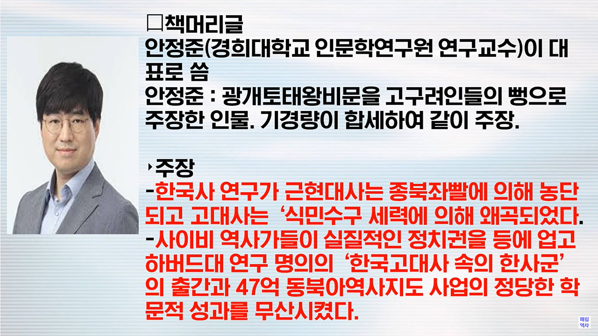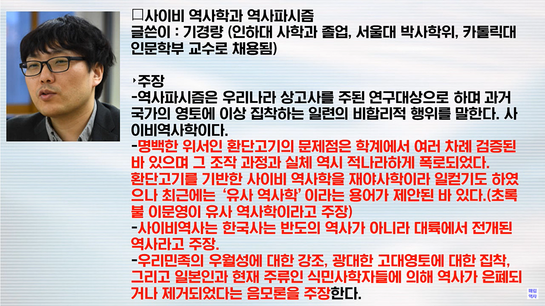 2015~2016년 국정교과서 사태가 한창 진행 중이던 2016년 2월과 5월 '역사문제연구소'에서 발행한 <역사비평> 114호, 115호에 연속 기획으로 글 6편이 실렸습니다. 6편의 글은 2017년 역사비평사에서 발행한 <한국 고대사와 사이비역사학> 책에 실렸습니다. '기획(企劃)'의 문자적 의미는 '일을 꾀하여 계획함'입니다. 즉 '역사문제연구소'가 의도적으로 치밀하게 준비해 대중학술지인 <역사비평>에 실었다는 사실입니다.