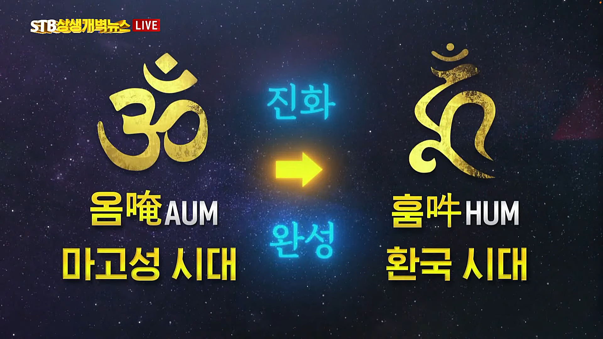 대우주의 근원에서 울려 나오는 신(神)의 소리, 즉 우주의 본래 원음(原音), 천지 조화의 소리를 인류 문명사에서 처음으로 드러내신 분이 2만 5천 년 전 마고 대성모님이십니다. 마고 대성모님께서 '옴唵'을 전해주면서 동방 신선 율려문화가 처음 열렸고, 인류 최초의 국가인 환국(桓國)에서 '훔吽'이라는 글자가 나오면서 두 가지 우주 원음인 '옴唵'과 '훔吽'이 완성됐습니다.