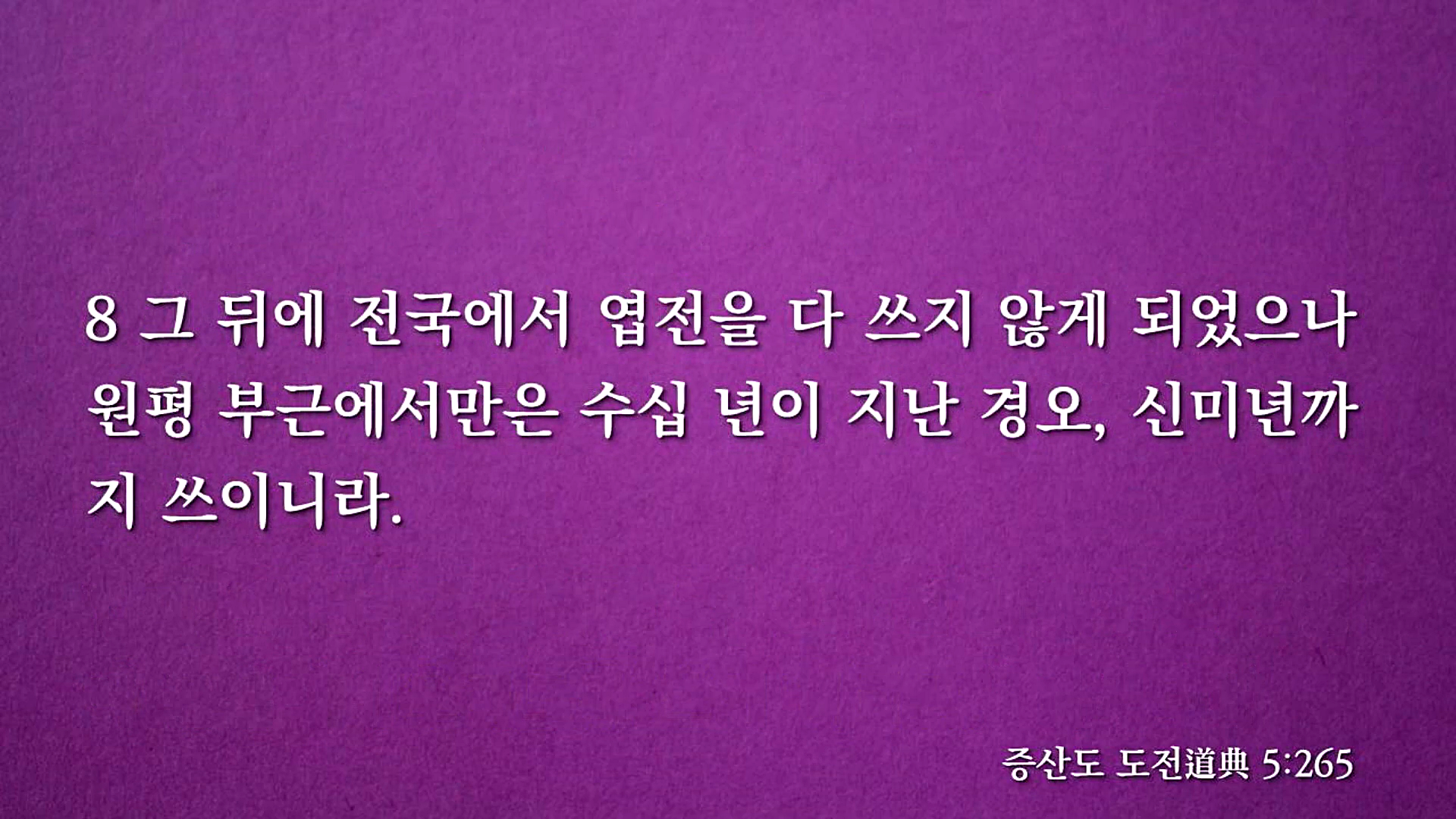 현재의 전라북도 김제시 금산면 원평리는 원평장터는 생활에 필요한 곡식과 다양한 물품을 사고파는 장소로 열심히 살아가는 사람들의 활기찬 삶의 모습을 그대로 보여주는 곳입니다. 엽전(葉錢)은 주조하던 틀인 거푸집이 나뭇잎 여러 개가 달린 모양이라고 하여 '잎 엽(葉)'을 붙였습니다. 상제님께서는 희로애락이 펼쳐지는 장터에서 오랜 세월 민초들의 삶의 애환이 묻어있는 엽전을 사용할 수 있도록 천지공사를 처결하신 것입니다.
