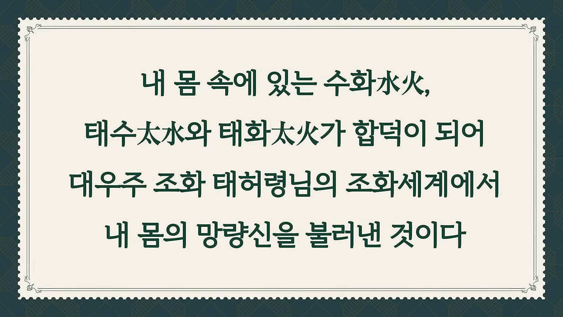 언청계용신은 용과 봉황이 합일된 나의 망량신(魍魎神)입니다. 망량(魍魎)은 성령의 원래 말로써 흔히 도깨비라고도 말하는 비인격적인 자연신입니다. 언청계용신을 만났다는 것은 단순히 건강과 심리적으로 평화를 찾아주는 기존의 명상수행을 넘어 대우주와 내가 하나 되어 무병장수의 신선문명을 열어가는 주인공의 길로 들어섰다고 천지에서 확증해 준 것입니다.