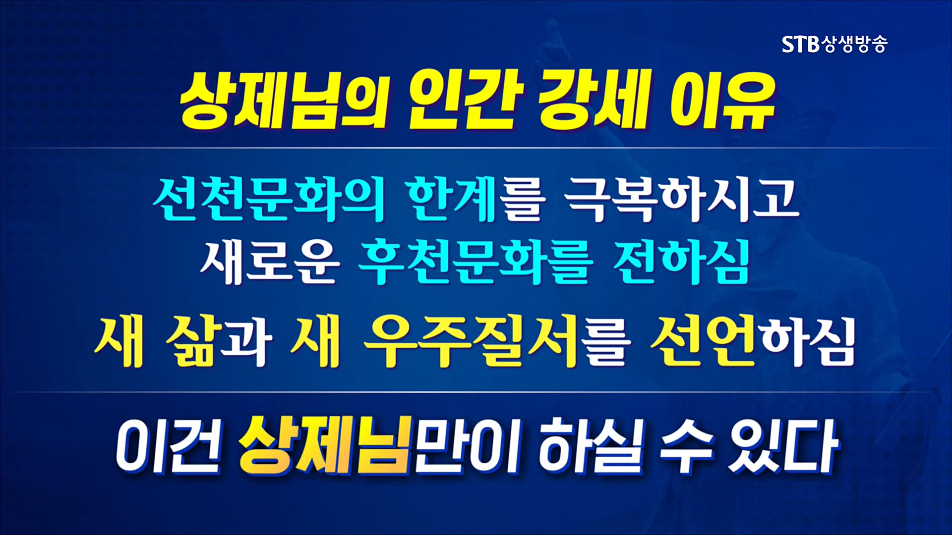 대우주의 질서가 상극에서 상생으로 전환하면서 하늘과 땅과 인간이 대변혁 하는 가을개벽기를 맞아 인간으로 강세한 우주 통치자이신 상제님께서 천지인을 완전히 새롭게 개조하는 천지공사(天地公事)를 보셨습니다. 상제님께서 천지공사를 처결하여 상생의 질서로 돌아가는 가을우주를 열어주시면서 "이때는 모름지기 새판이 열리는 시대니라."라고 말씀하셨습니다.