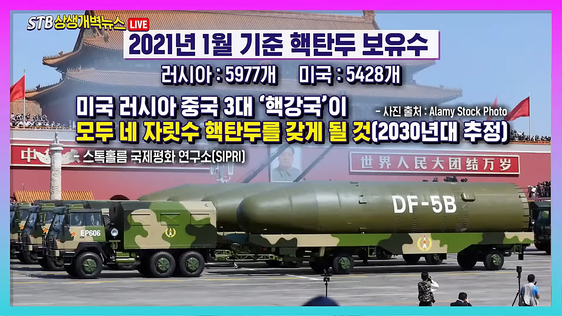 2030년 러시아, 미국, 중국 3대 핵강국 네 자릿수 핵탄두 보유