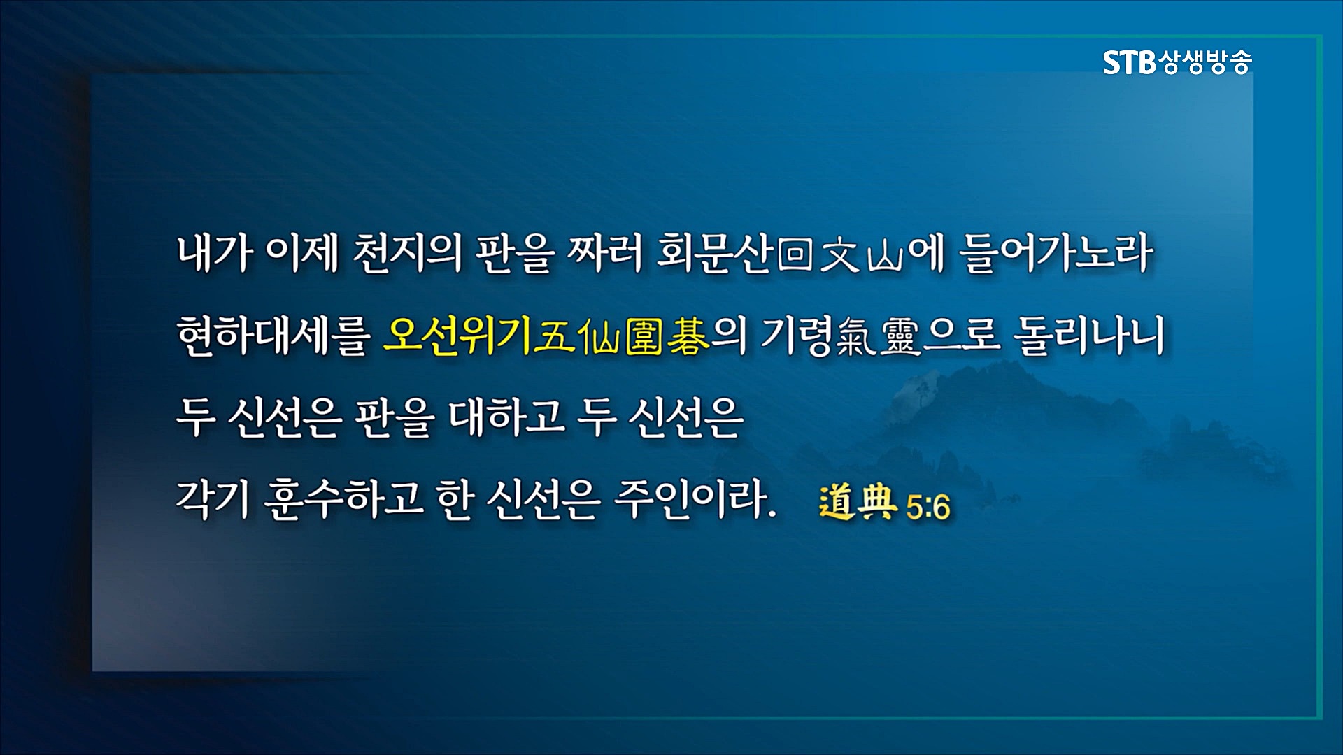 '오선위기(五仙圍碁)'는 다섯 신선이 바둑 두는 형상으로 한반도의 남북한은 주인이고, 미국과 일본, 중국과 러시아가 훈수꾼입니다. '목화토금수 오행(五行)'이 하늘에 운동하고 작용하는 것을 오운(五運)이라 하고, 오운이 땅으로 내려와 작용하는 것을 육기(六氣)라고 합니다. 하늘의 오운(五運)은 만물을 낳고 땅의 육기(六氣)는 만물 기르면서 만물의 생성과 변화가 이루어집니다.