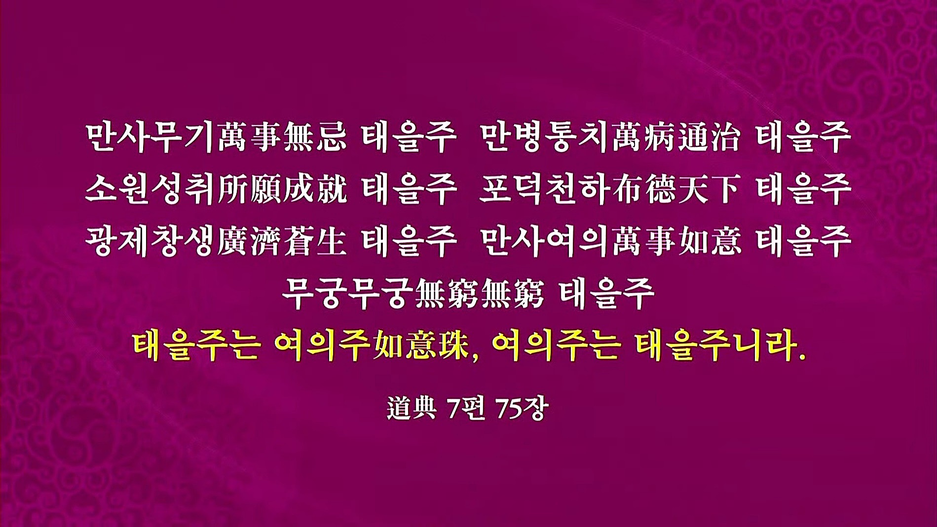 오늘의 증산 상제님 말씀: "태을주는 수기(水氣) 저장 주문이니라.", "조화는 시천주주 속에 다 있느니라."