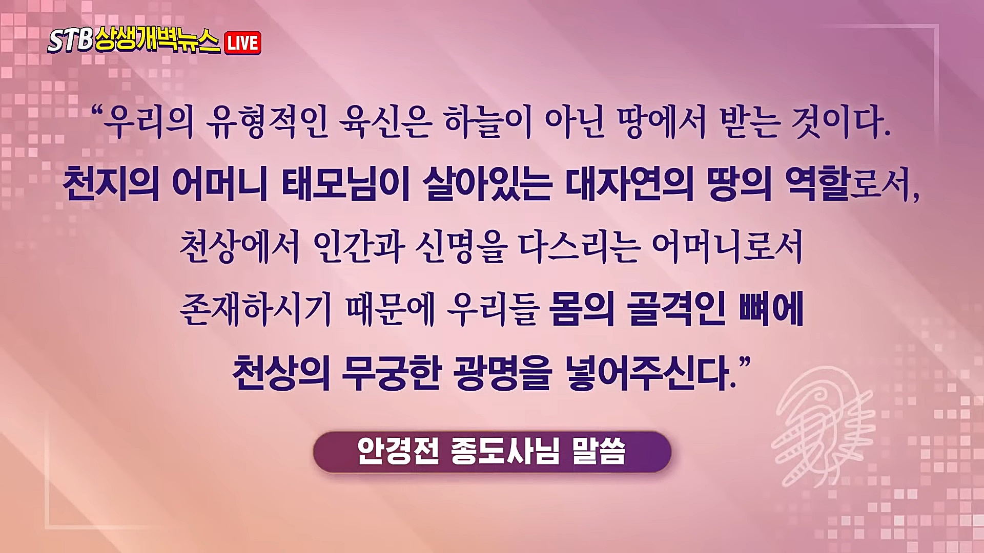 상생라이프 주제: 천지의 어머니 하나님 태모님께서 뼈에 무궁한 조화광명을 넣어주신다.