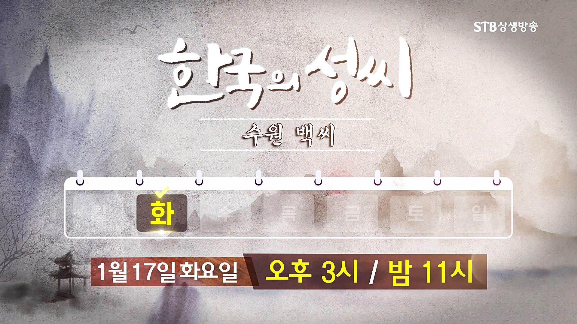 STB상생방송 예고: 한국의 성씨 34회 수원 백씨