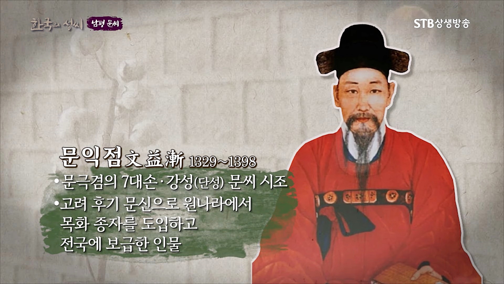 이후 문극겸의 7대손인 문익점의 딸과 이인의 6대손인 이원계가 결혼하면서 남평 문씨와 전주 이씨가 집안의 인연이 다시 이어집니다. 이원계는 이자춘의 장남이며 이복동생은 조선을 건국한 태조 이성계입니다. 고려 말 이성계 세력의 전제개혁 반대한 문익점은 탄핵받고 낙향하여 목화 재배에 성공합니다. 고려의 신하였던 문익점은 조선이 건국된 후 강성군에 추봉된 후 영의정으로 추증되었고 세조 때 이르러 문익점을 기리는 사당이 세워집니다.