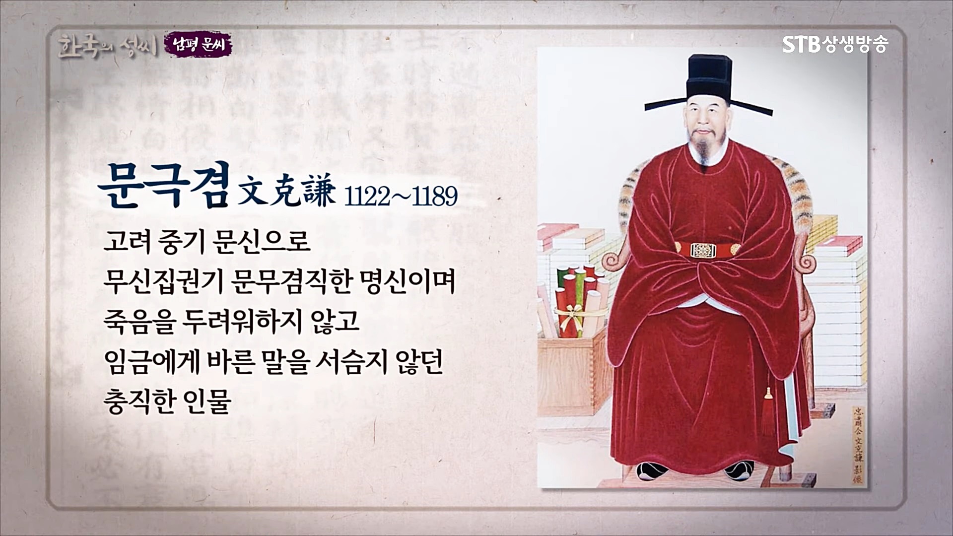 고려 중기에서 후기로 넘어가는 시기에 문신(文臣)을 우대한 정책에 불만을 품은 이의방을 비롯한 이고와 정중부 등 무신들이 무력으로 정권을 장악한 무신(武臣)의 난(亂)을 주도했습니다. 이의방의 동생인 이인(이린)은 황제에게도 간언을 서슴지 않았던 충직한 문신(文臣) 문극겸의 딸과 결혼하면서 남평 문씨와 전주 이씨의 큰 인연이 시작됩니다.
