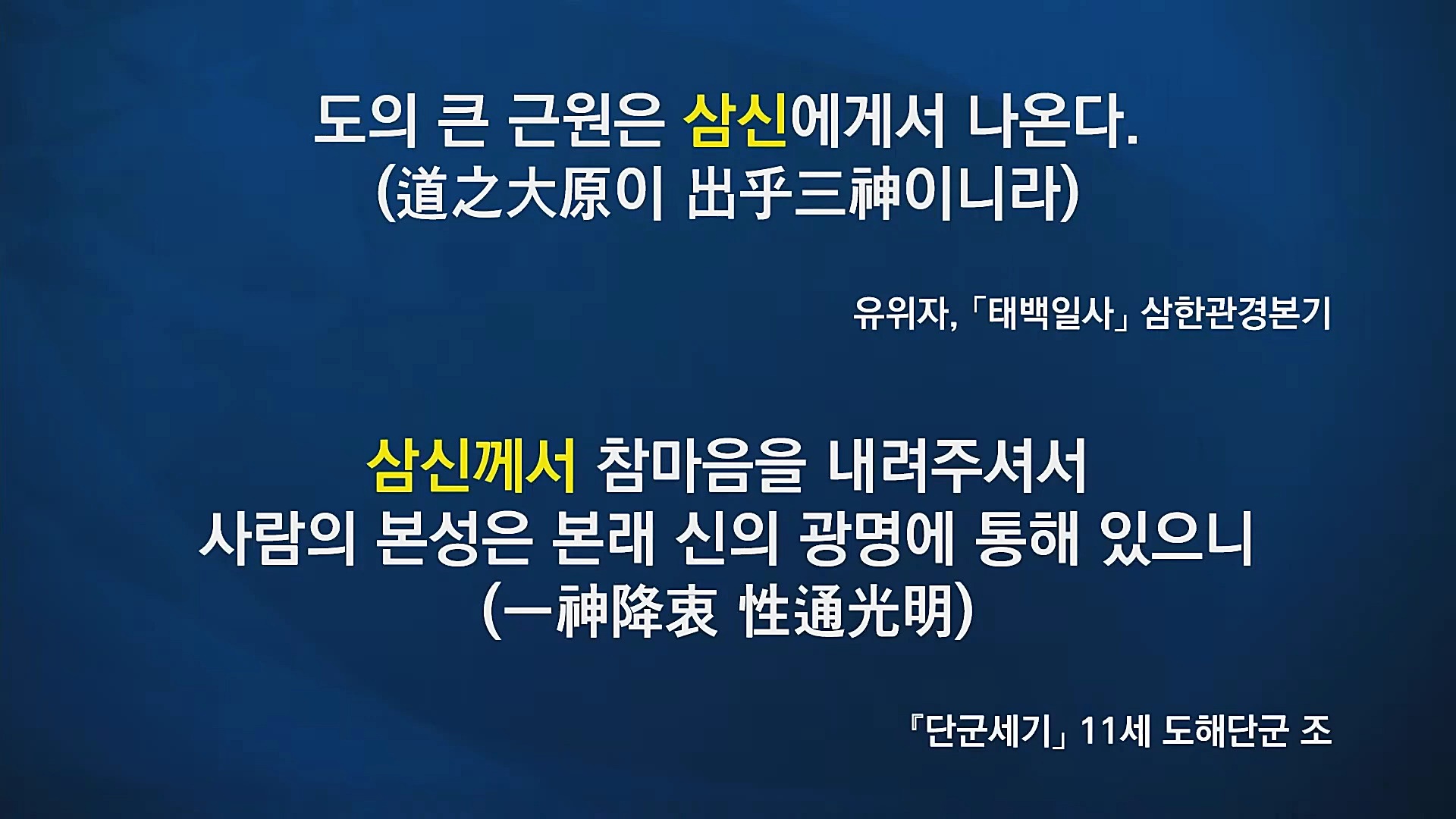 다시 말해 무형의 우주 조물주 하나님의 참마음이 내 몸에 들어와 나의 참마음인 성(性)이 되고, 무궁한 생명력이 들어와 나의 명(命)이 되고, 우주를 영원히 움직이게 하는 정기가 내려와 내 몸의 정(精)이 된 이치를 알고, 단군조선 이전부터 우주의 이상을 실현하는 주인공이 되기 위해 성명정을 회복하는 명상수행을 했습니다.