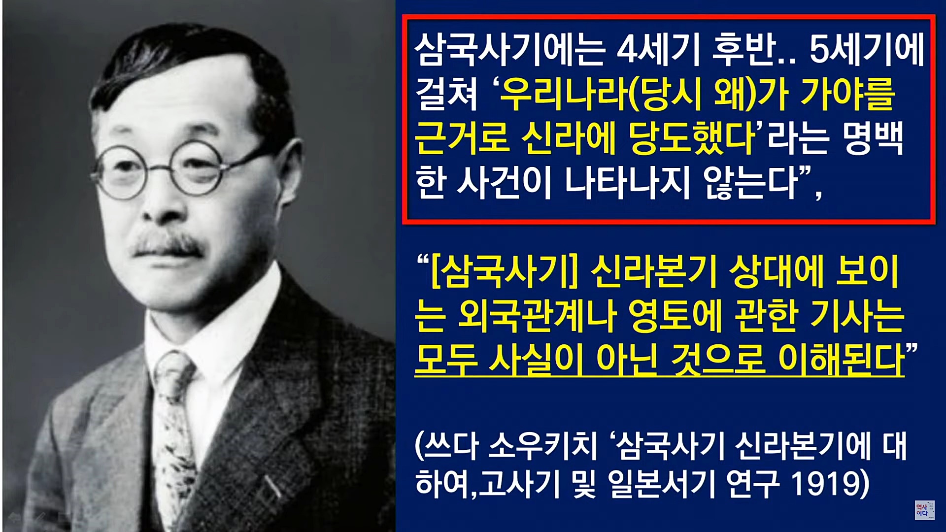 이토 히로부미의 스승이며 얼마 전 사망한 아베 전 총리가 가장 존경한 인물이 요시다 쇼인(1830~1859)입니다. 일제가 대한제국을 강제로 병합한 것은 1910년이지만, '조선을 정벌한다'라는 소위 '정한론(征韓論)'은 19세기 중반 요시다 쇼인이 주창했습니다. 한국을 침략하기 위해 19세기 중반부터 일제가 대한의 역사를 왜곡 조작한 역사관이 식민사관입니다.
