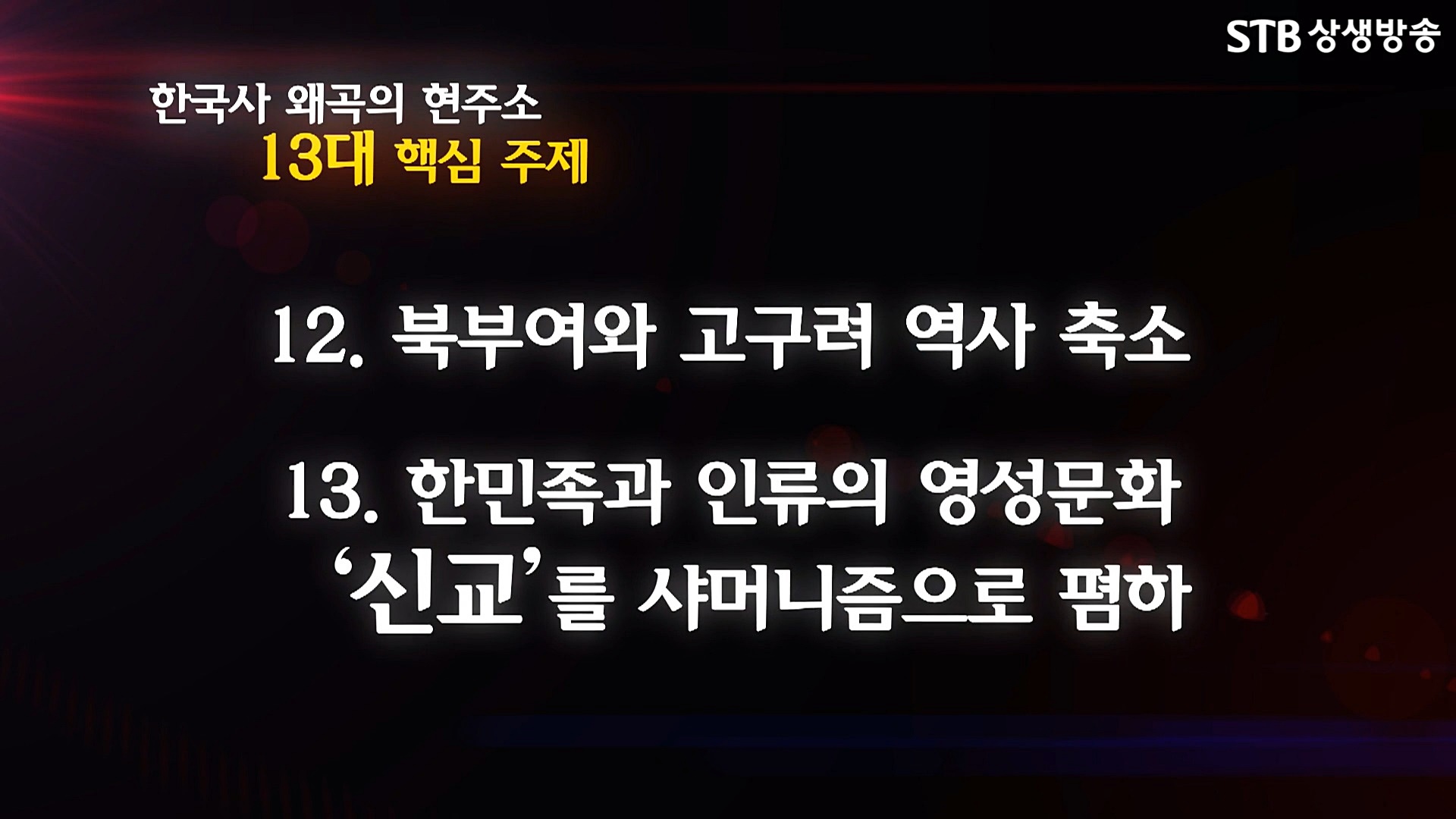 '벌거벗은 한국사' 프로그램 소개에서 5천 년 역사를 말하지만, 지금까지 약 1,400년 전까지 인물과 사건만 다루었을 뿐 그 이전의 3,600년의 역사는 전혀 다루지 않고 삼국통일을 전후한 시대를 거슬러 올라가지 못하고 있습니다. 우리의 진짜 역사를 다루지 못하고 있고 강의하는 역사학자 대다수가 일제 식민사학을 계승한 주류 역사학자들입니다.