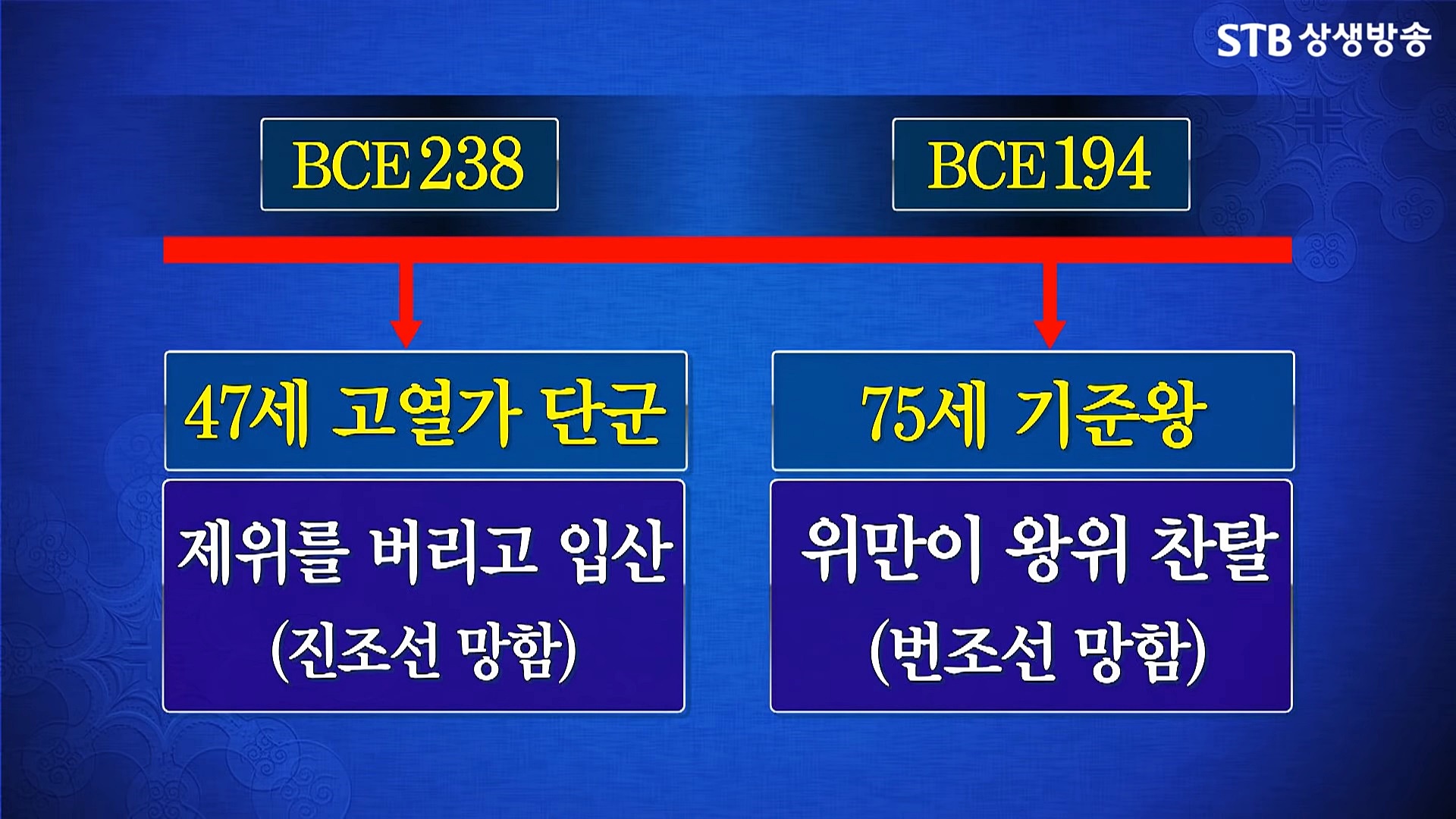 진한(진조선), 번한(번조선), 마한(막조선)의 나라를 셋으로 나누어 다스린 단군조선은 서력전 238년 역사의 문을 닫았고, 해모수 단군은 1년 전인 서력전 239년 단군조선의 중심이었던 진조선에서 북부여를 건국했습니다. 번한(번조선)을 다스린 부단군이며 마지막 왕인 준왕은 중국 연나라에서 망명한 위만을 받아주었지만, 위만은 은혜를 저버리고 반역으로 정권을 찬탈한 것이 '위만조선'입니다.