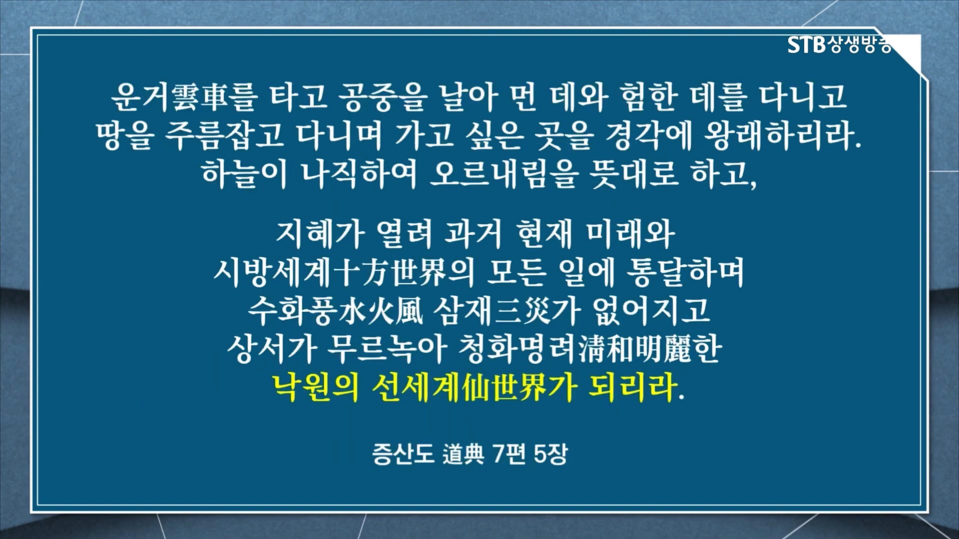 인류의 뿌리문화를 복원하여 열매문화를 열어가는 증산도 STB상생방송