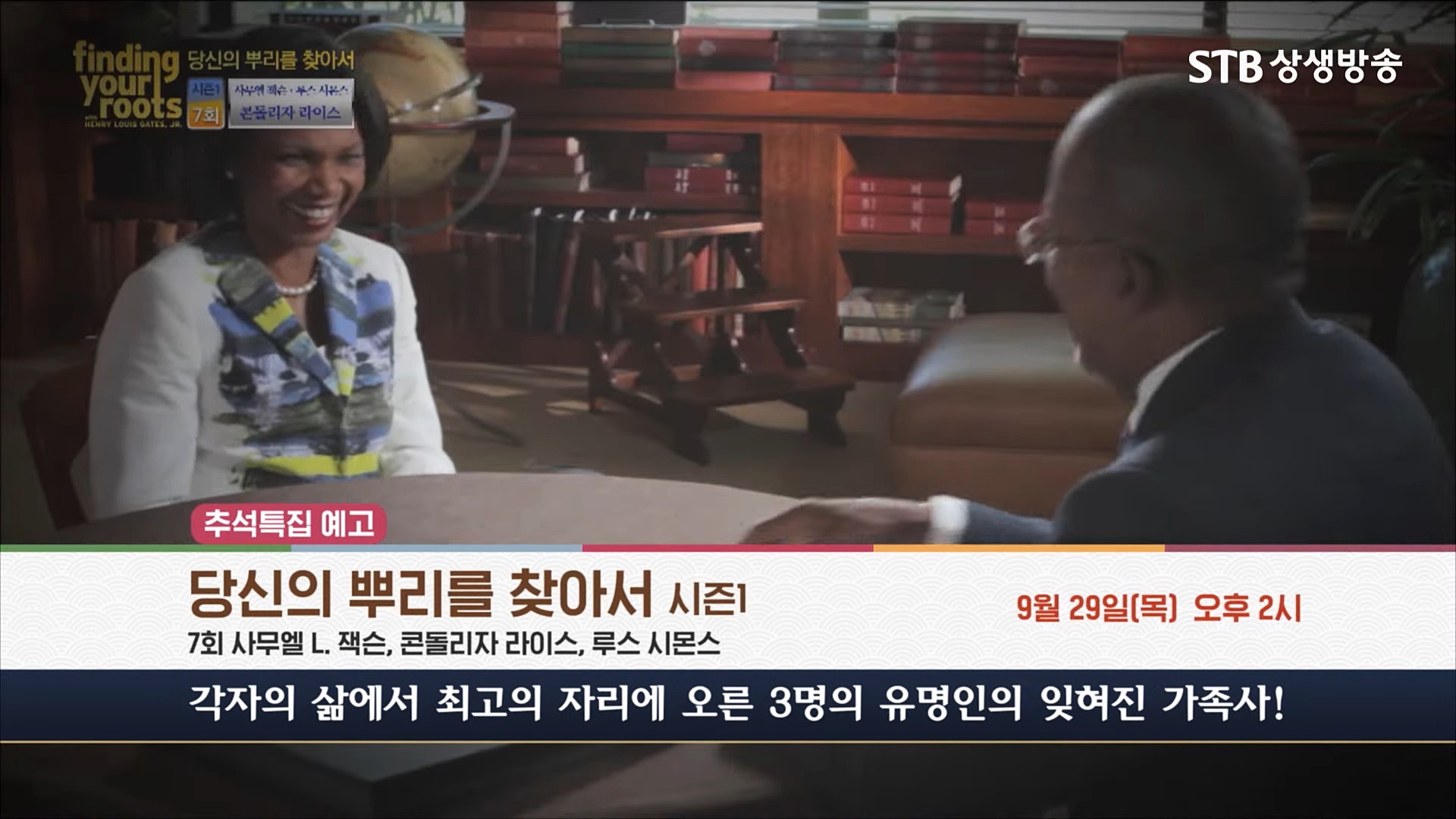 미국의 유명 영화배우 사무엘 L. 잭슨, 前 미국 국무장관 콘돌리자 라이스, 미국의 아이비리그에 속하는 명문 브라운 대학 총장 루스 시몬스의 조상을 찾아갑니다.