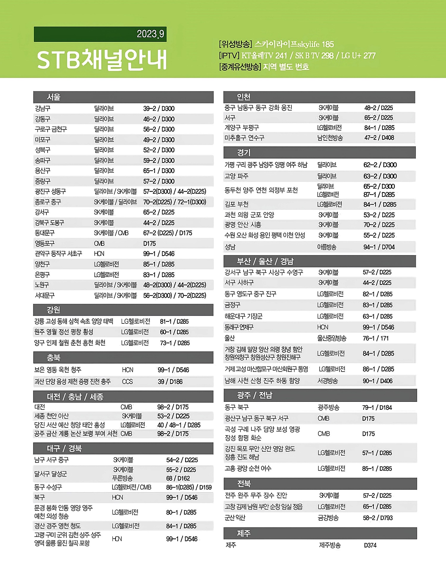 한韓문화 중심채널 증산도 STB상생방송 전국 채널 안내