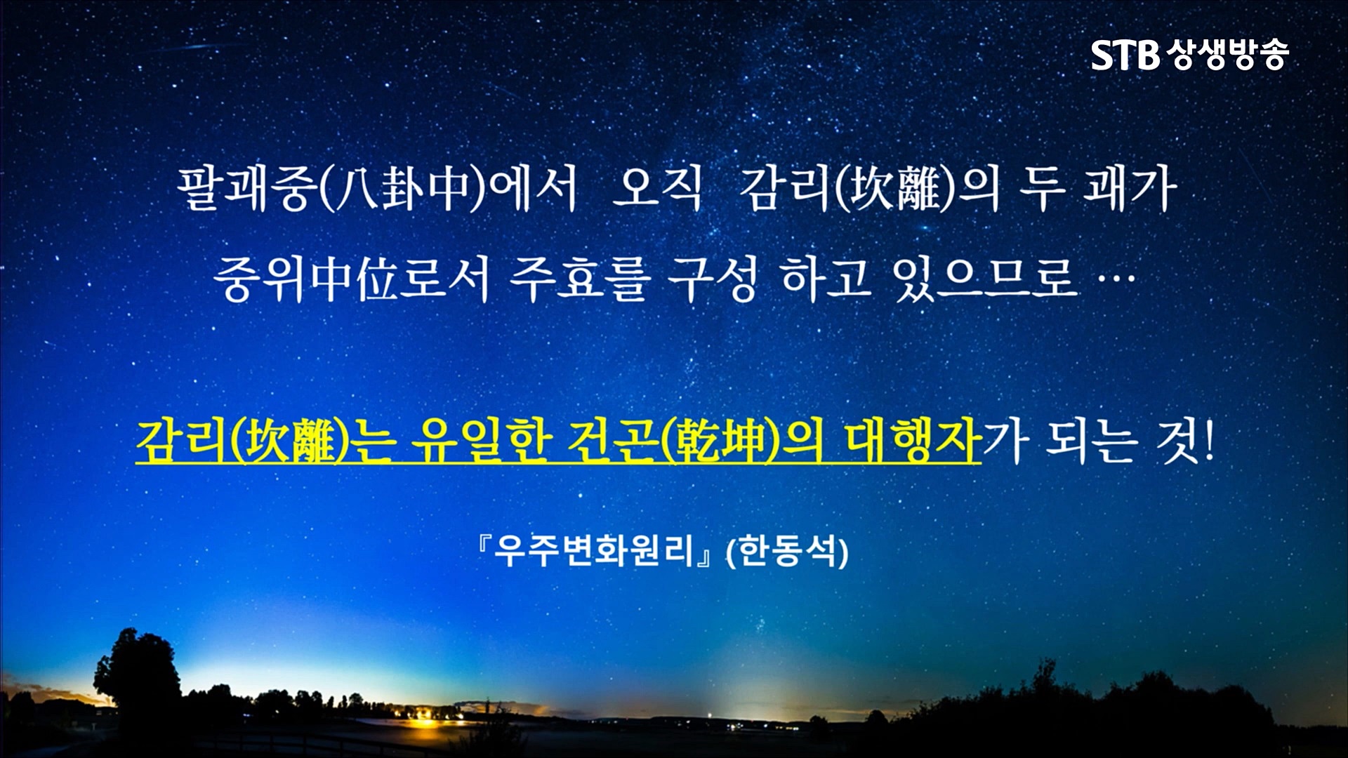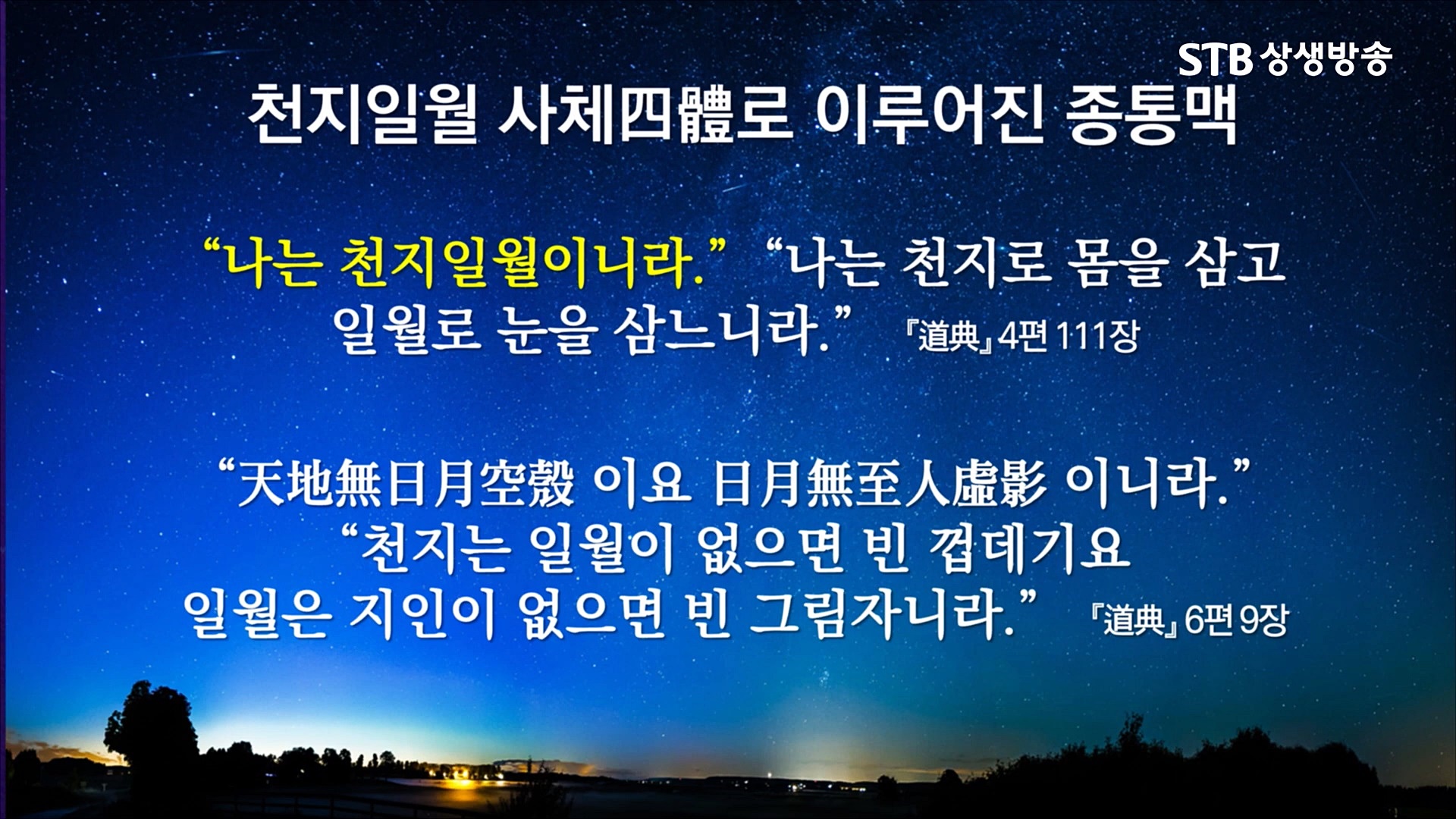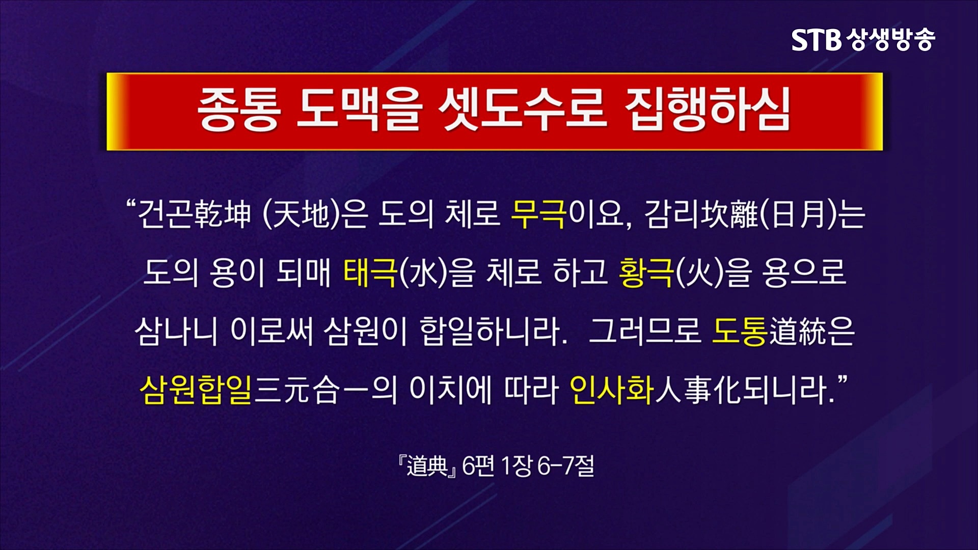 상제님께서는 당신님의 대도진리를 이용한 윤통 세력이 자신들이 정통이라고 주장할 것을 아시고, 절대불변하고 누구도 바꿀 수 없는 우주의 이치(天理)인 건곤감리(乾坤坎離), 그리고 천리(天理)를 바탕으로 구성된 천체 구성의 틀인 천지일월(天地日月)로서 상제님 도의 연원과 도통맥을 전수해 놓으셨습니다.