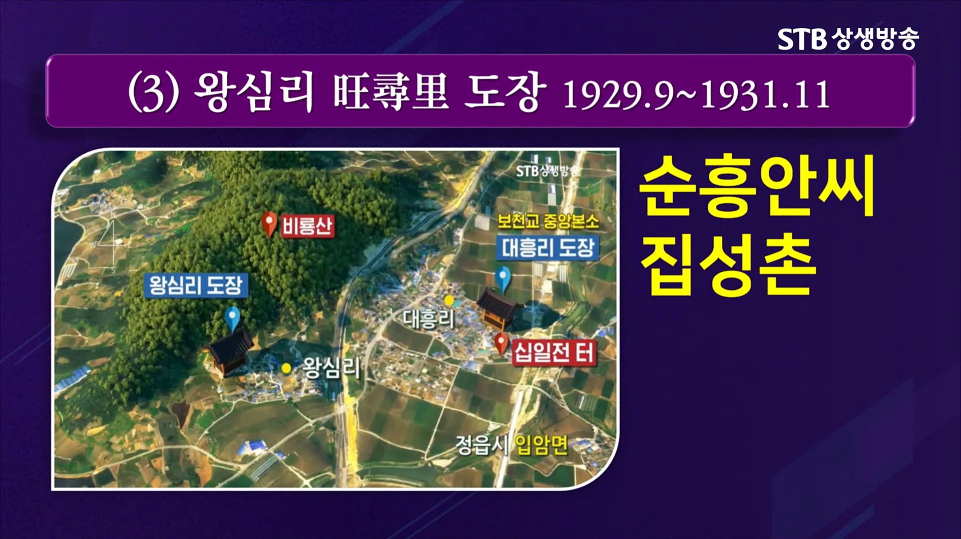 세 번째 살림인 정읍 왕심리(旺尋里)는 순흥 안씨 집성촌으로 어머니 하나님이신 태모님은 서력 1929년 9월부터 1931년 11월까지 왕심리 도장에 머무르십니다. 정읍 대흥리 도장과 이웃한 왕심리 도장에서 '모든 원혼신(寃魂神) 해원 공사', ' 후천 창생 갱소년 공사', '인간 세상의 선악 판별 공사' 등 여러 천지공사를 집행하셨습니다.