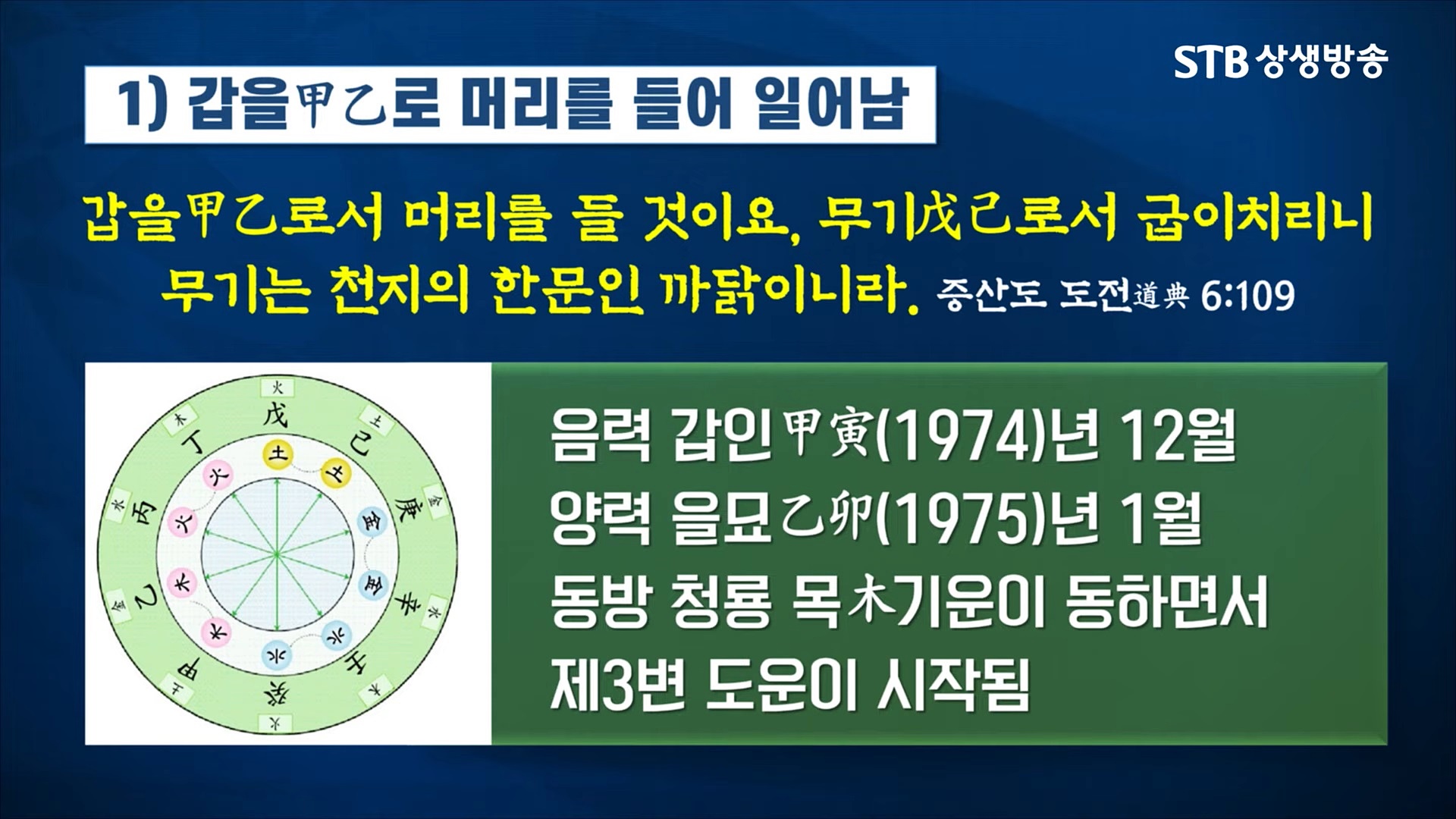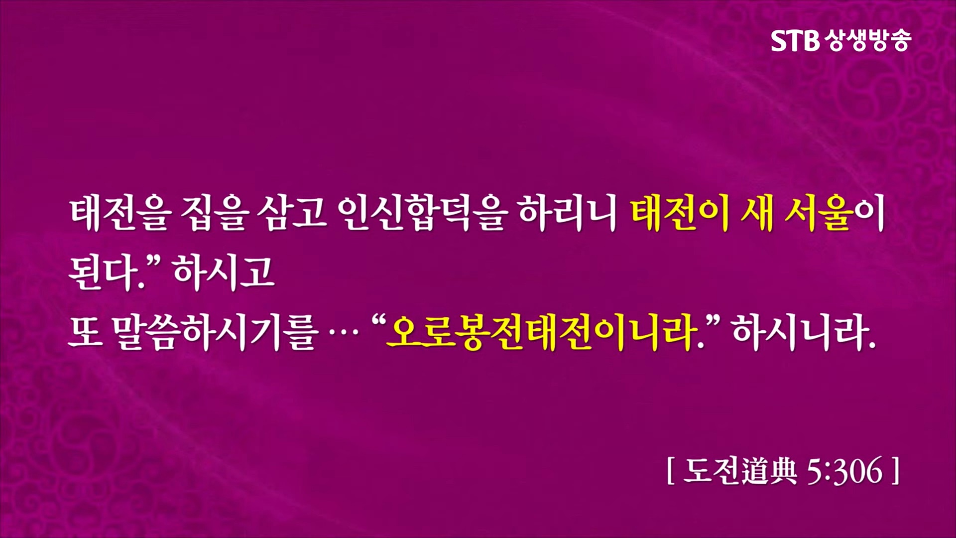 "갑을(甲乙)로서 머리를 들 것이다.", "일꾼이 콩밭(太田)에서 낮잠을 자며 때를 넘보고 있느니라. 내가 후천선경 건설의 푯대를 태전(太田)에 꽂았느니라."라는 증산상제님의 천지공사 그대로 음력으로 1974(갑인甲寅)년 12월, 양력으로 1975 (을묘乙卯)년 1월 안운산 태상종도사님과 안경전 종도사님께서 대전(태전)에서 상제님과 태모님의 진리를 온전하게 세상에 드러내는 천지대업 완수의마무리 결실 도운, 진법(眞法) 추수 도운인 제3변 도운이 시작됩니다.