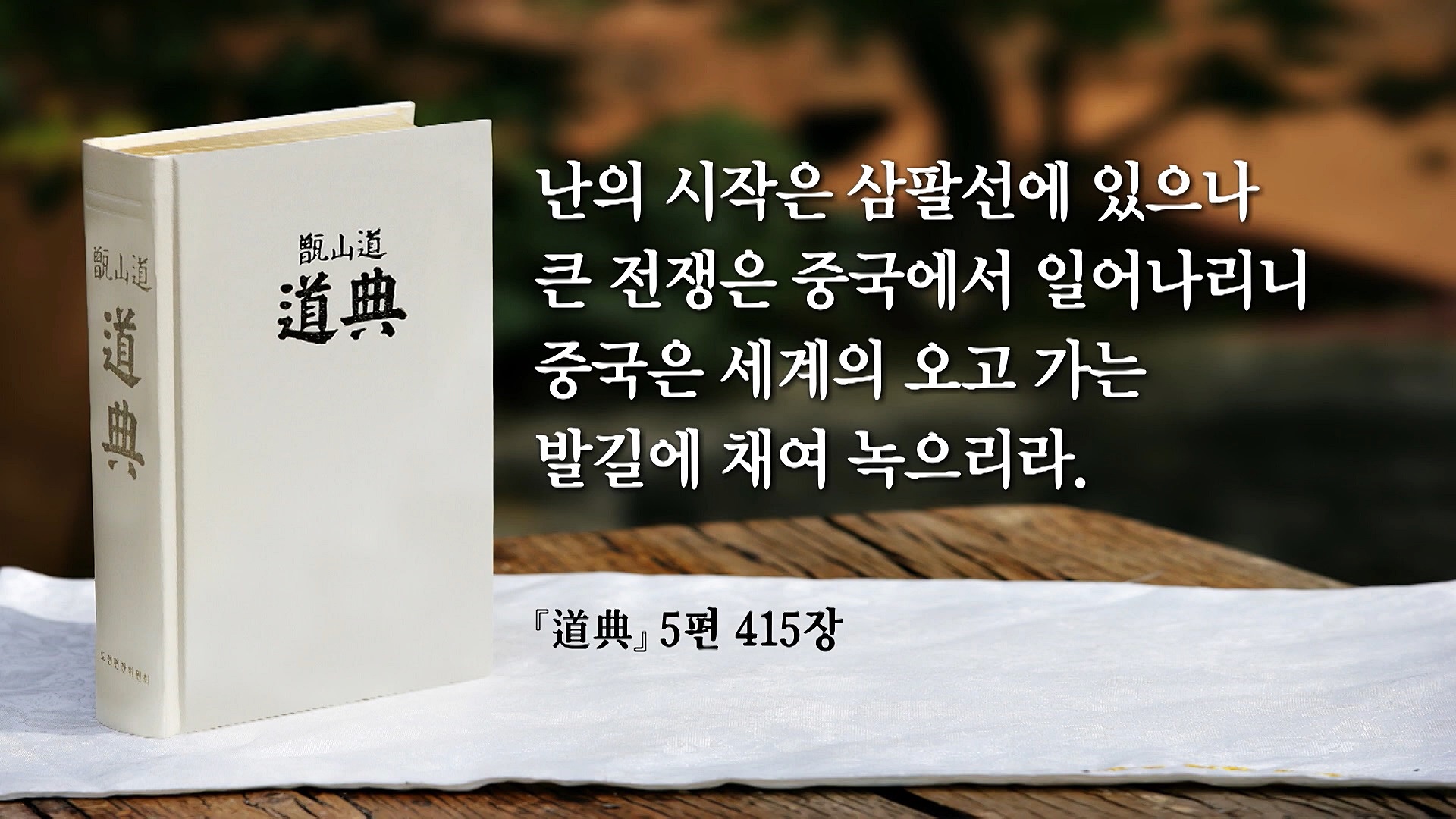 안경전 종도사님께서는 "누구도 거역할 수 없고, 결코 피할 수 없는 최후의 한판 승부 상씨름! 그 절체절명의 상황이 우리가 살고 있는 바로 이 땅, 한반도에서 벌어지게 된다. 앞으로 맞이할 남북 상씨름은 동서고금의 그 어떤 전쟁과도 비교할 수 없는 우주사를 바꾸는 가장 강력한 세계 대전쟁이다."라고 말씀하셨습니다. 상제님 천지공사 그대로 거대한 변혁의 폭풍 속으로 휩쓸려 들어가고 있습니다.
