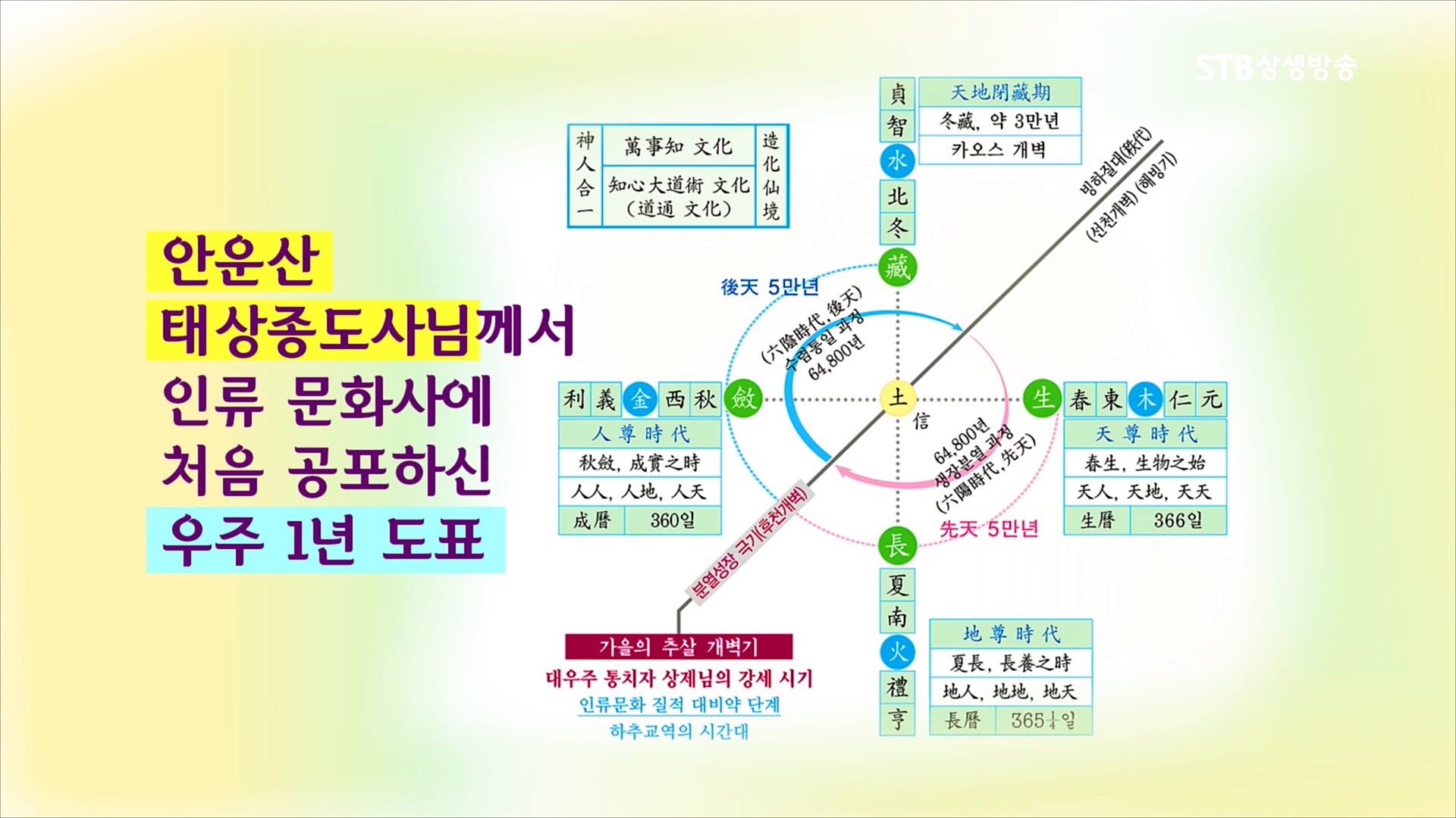 결론적으로 춘생추살(春生秋殺)하는 우주 이치와 봄에 씨뿌리고 가을에 거두는 천지 대자연의 섭리, 즉 우주의 봄과 여름철은 성장과 발전의 과정이며 우주의 가을철은 성숙과 통일과 결실의 때이기 때문에 인간과 문명을 결실하기 위해 우주 통치자 하나님께서 인간으로 강세하신 것입니다. 가을의 때를 맞아 인간열매를 맺어야 하는데 분열 발달의 여름철 기운을 받은 지상에서 긍정적인 부분도 있지만, 부정적인 현상이 널리 퍼지면서 인류가 생사의 총체적 위기에 몰린 것입니다.