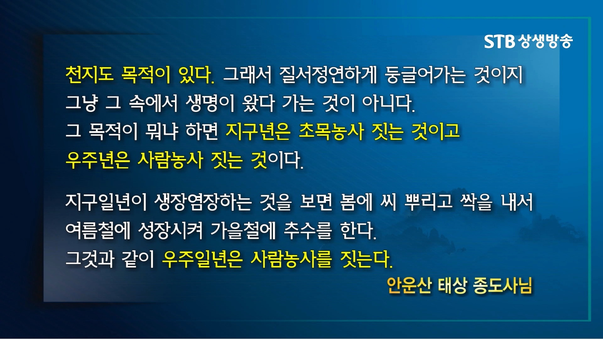 인생사와 국가의 운명과 거대한 인류의 역사도 상극(相克)과 상생(相生)의 상황을 오고 갑니다. 이 세상에 크고 작은 역경과 고난의 상극적 상황이 있지만, 하늘땅과 인간과 신(神)의 세계까지 대변혁 하는 총체적인 위기는 우주가 129,600년을 주기로 인간농사를 짓는 우주 1년 사계절의 여름우주에서 가을우주로 넘어가는 가을개벽기입니다.