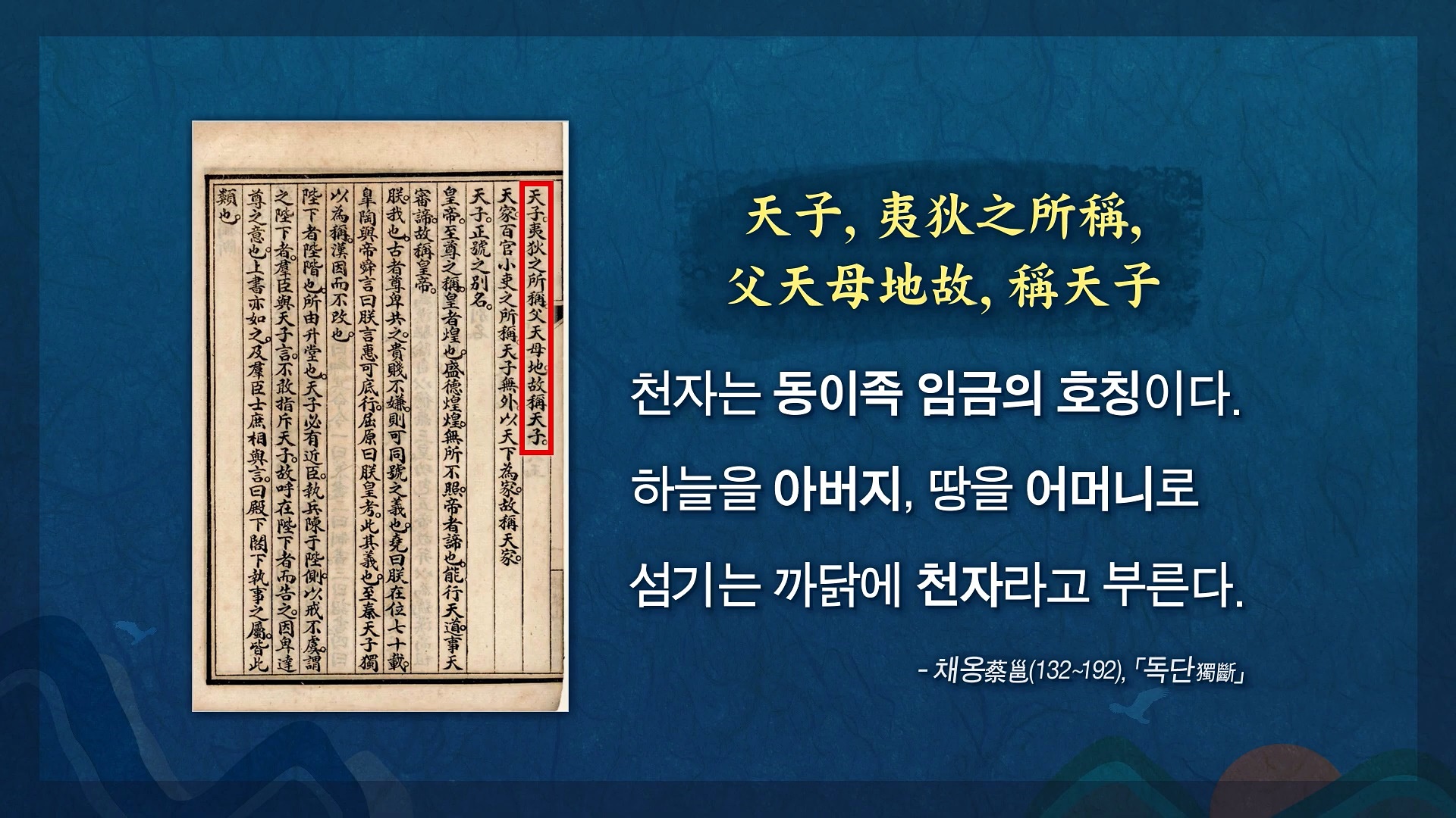 하늘과 땅, 즉 천지를 부모로 여기며 천지의 거룩하고 조화로운 광명을 내 안에 채워 진정한 천지부모의 아들과 딸이 되는 인간광명의 삶을 사는 것입니다. 중국의 후한(後漢) 말기 학자인 채옹(133~192)는 <독단獨斷>이라는 책에서 "천자(황제)는 동이족 임금의 호칭이다. 하늘을 아버지, 땅을 어머니로 섬기는 까닭에 천자(天子)라고 부른다."라고 했습니다.