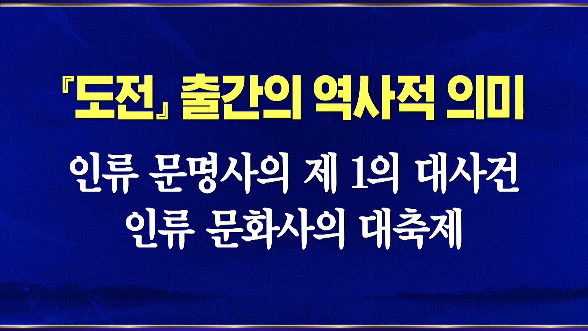 우주 통치자이신 상제님께서 내려주신 천강서(天降書)인 <천부경>을 지금까지 성인의 가르침을 의미하는 '세계 최초의 경전'이라 불러왔지만, 인간과 만물과 대우주의 생성 변화 이치를 담고 있는 세계 최초의 우주적 진리의 원전, 하나님의 진리 법전이라 불러야 합니다. 증산도 <도전>은 다가올 새 우주의 원대한 꿈과 비전을 담은 우주의 보물단지입니다.