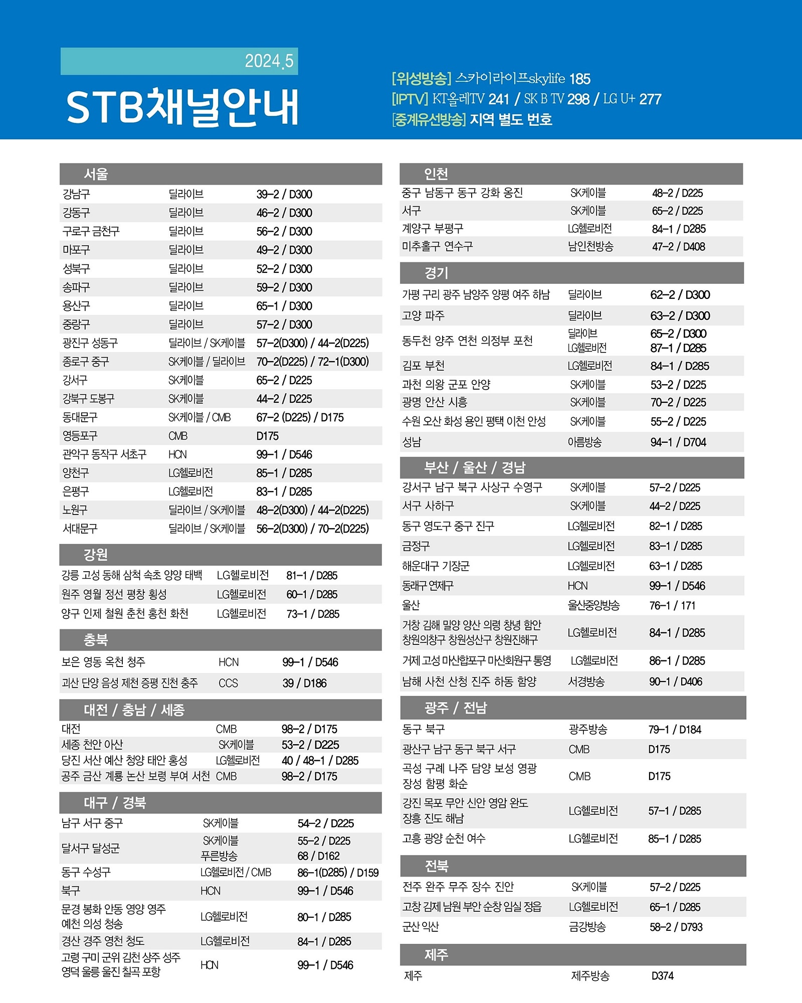 증산도 STB상생방송 채널 안내