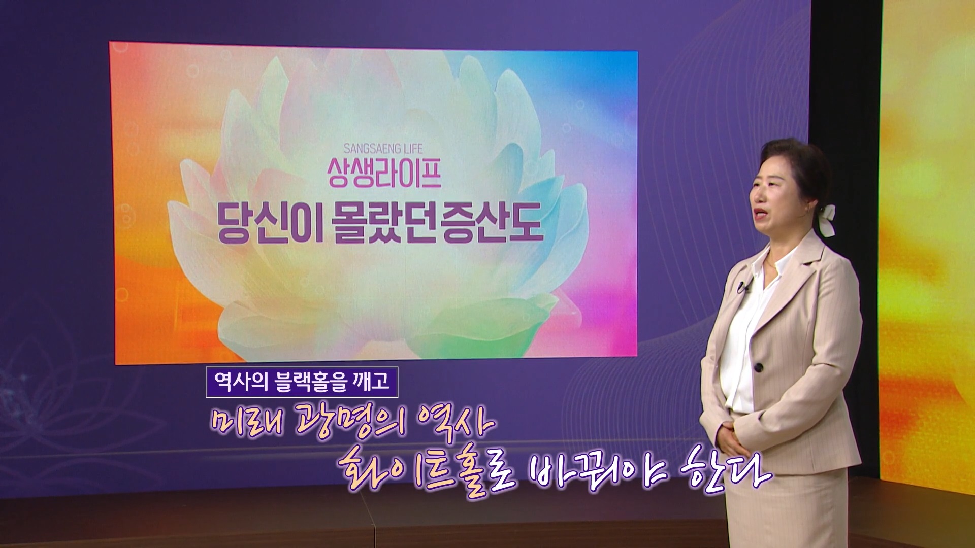 인류와 한민족의 뿌리 역사와 정신문화가 철저하게 왜곡되고 말살된 것을 개탄하며 창세 역사와 문화를 복원하신 증산도 안경전 종도사님께서는 "환국 배달 조선은 바로 우리 한민족의 마음속에 있는 블랙홀에 갇혀 있다. 이 역사의 블랙홀을 깨고, 그것을 새로운 미래, 광명의 역사인 화이트홀로 바꿔야 한다. 개벽해야 한다, 이게 바로 우리가 이 시대에 사는 이 역사의 어두운 면을 깨는 과제이다."라고 말씀하셨습니다.