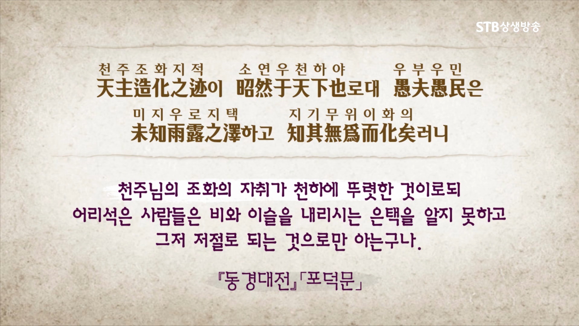 동양의 역(易) 철학은 천지 대자연의 변화의 길인 도(道), 천지인 삼계가 생성 변화하는 질서와 법칙과 만유 생명의 근원과 이 모든 것을 다스리는 주재자이신 우주의 최고신(最高神), 인류의 역사와 문명, 인간의 생사와 삶의 목적 등 세상 모든 문제를 해독할 수 있는 마스터키입니다. <동경대전>의 '포덕문'과 <장자>의 '천운편'은 천지 대자연의 자연 현상까지 다스리는 주재자가 상제님이라고 밝히고 있습니다.