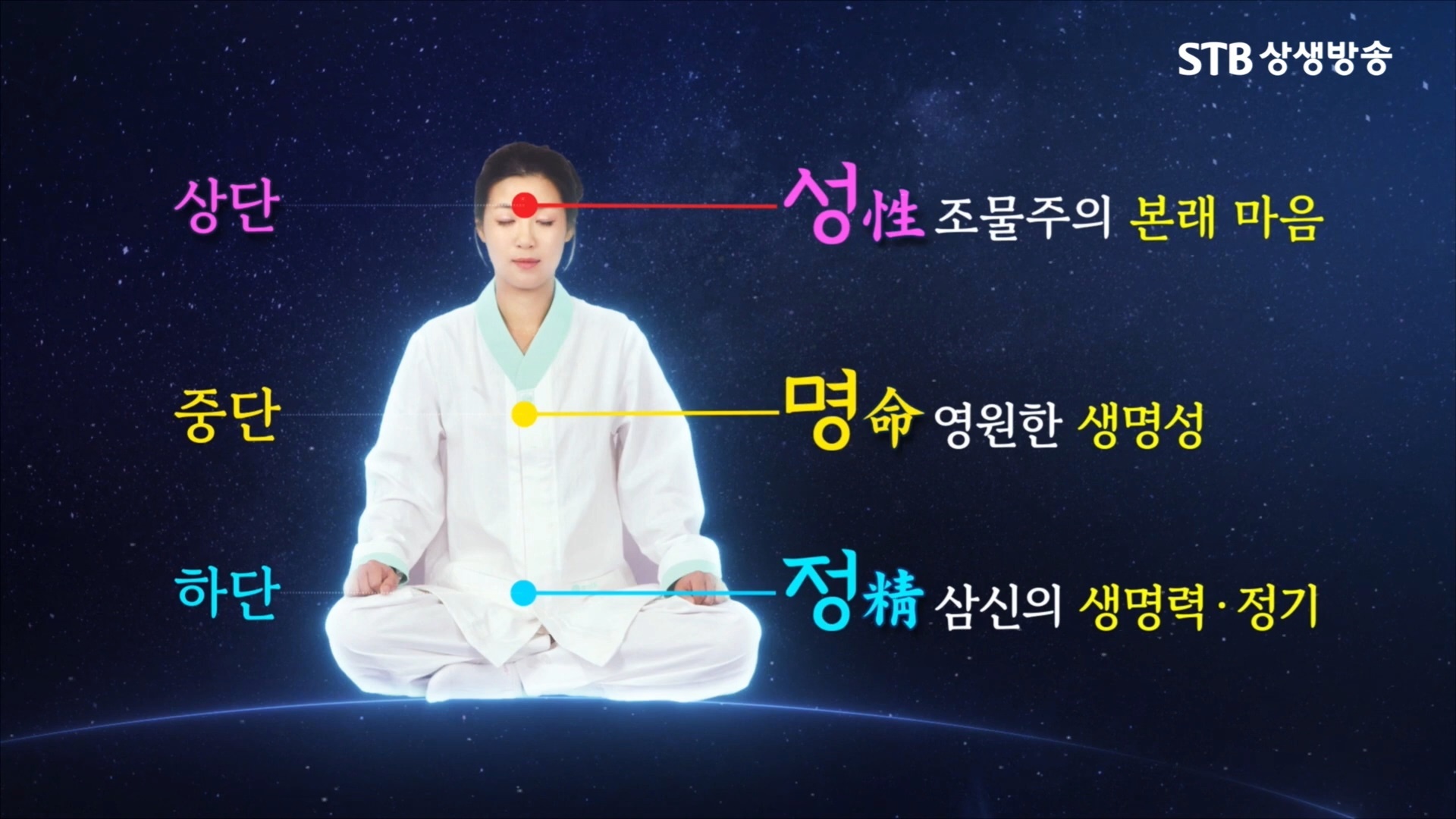 인간의 몸은 세상에서 가장 보배로운 궁전이기 때문에 내 육신과 일체인 마음(心)을 닦아 삼신(三神)의 본래 마음인 성(性)을 통함으로써 참(眞)됨을 이룹니다. 더불어 내 몸의 기(氣)를 잘 닦아 천지로부터 받은 천명(天命)을 깨달아 널리 선(善)함을 베풀어 나가는 것입니다. 성(性)을 통하고 명(命)을 깨달아 궁극적으로 내 몸을 잘 관리하여 정(精)을 지킴으로서 아름다움(美)을 실현하는 것입니다.