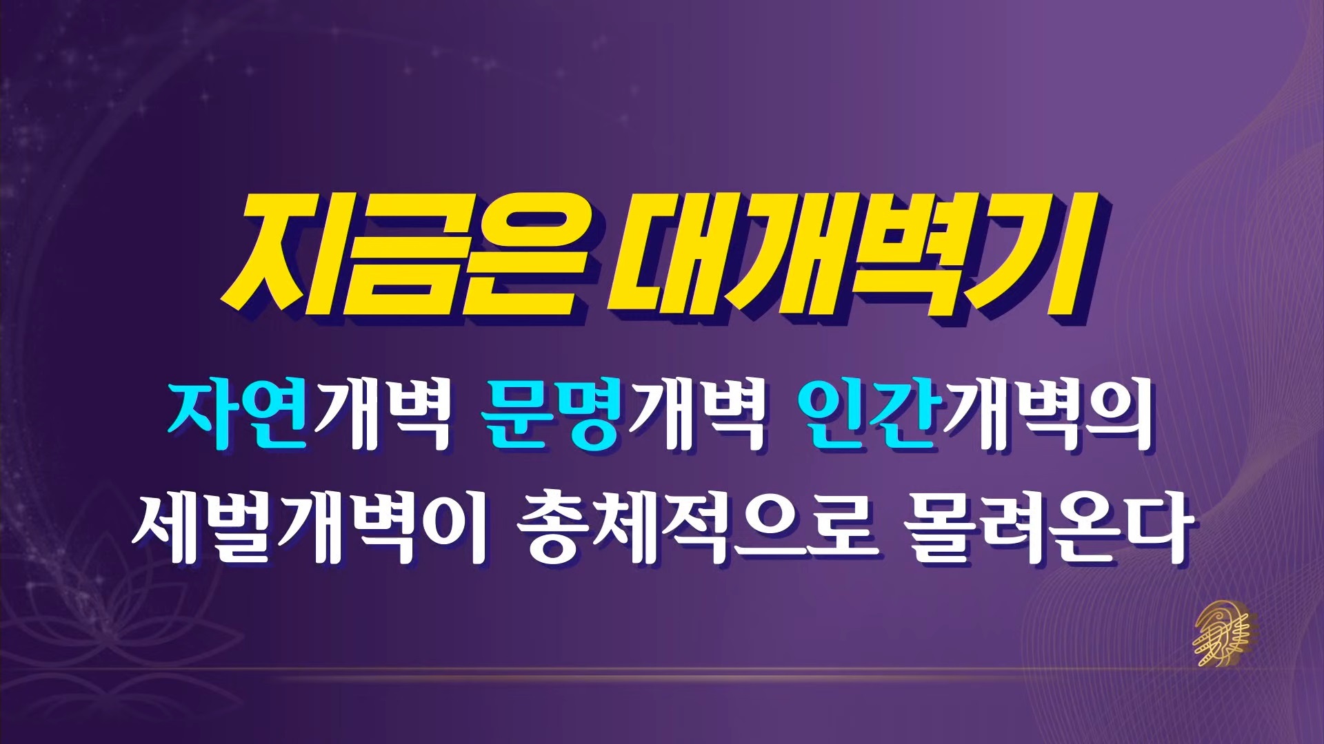 지금은 우주 질서가 대전환하는 후천개벽의 초비상 시간대