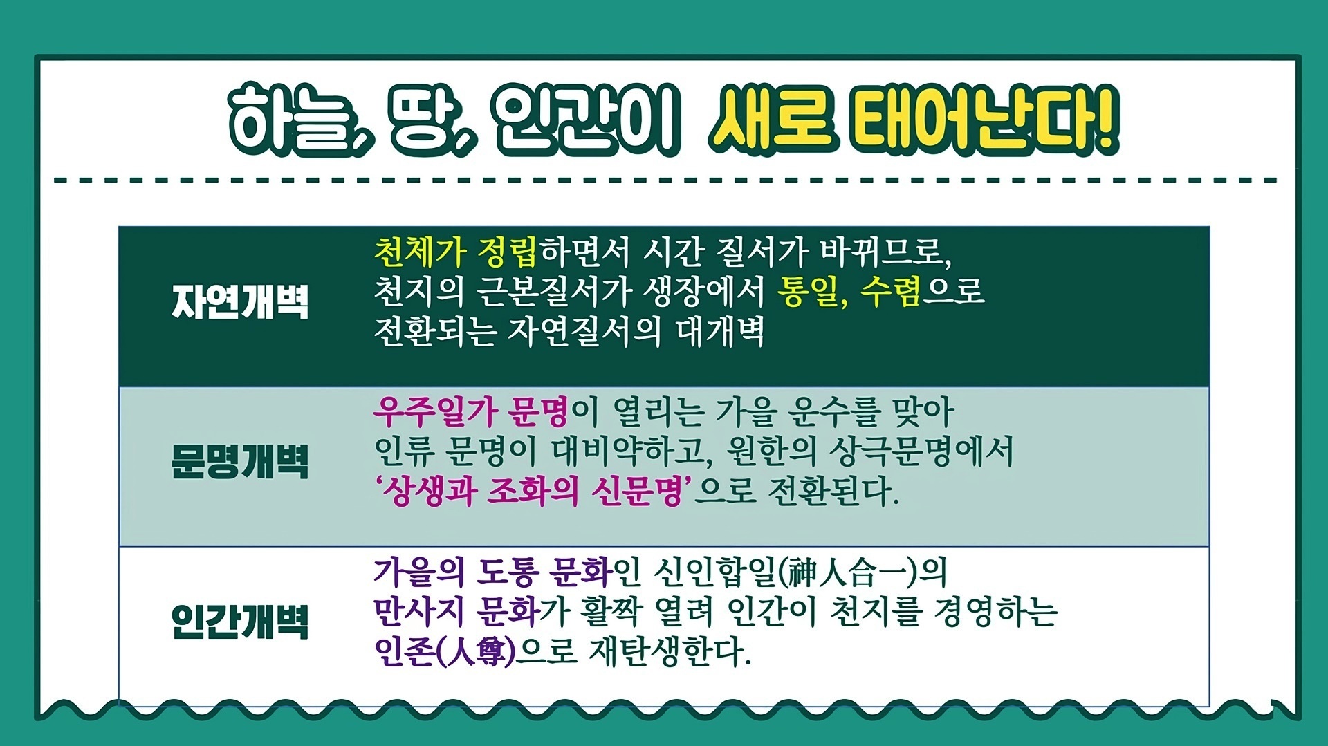 여름우주 상극 문화를 끝내고 성숙과 통일의 가을우주 상생 문화를 열어가는