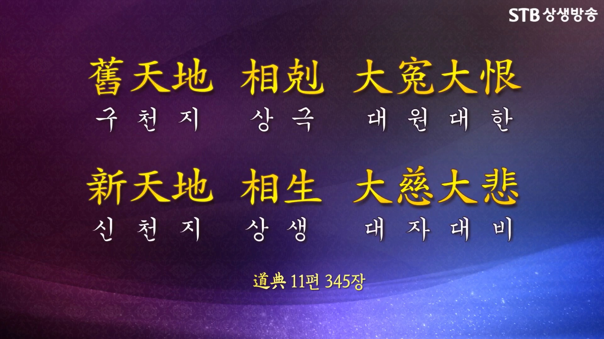 상극의 선천 세상을 끝내고 상생의 후천 세상을 열어주시기 위해 인간으로 강세한 우주 통치자이신 증산 상제님께서는 "선천(先天)은 상극의 운(運)이라. 상극의 이치가 인간과 만물을 맡아 하늘과 땅에 전란(戰亂)이 그칠 새 없었다."라고 말씀하셨습니다. 상제님께서 말씀하신 '상극의 운'과 '상극의 이치'란 하늘과 땅의 우주 대자연과 인간과 신(神)의 세계를 움직이는 우주 질서를 말합니다.